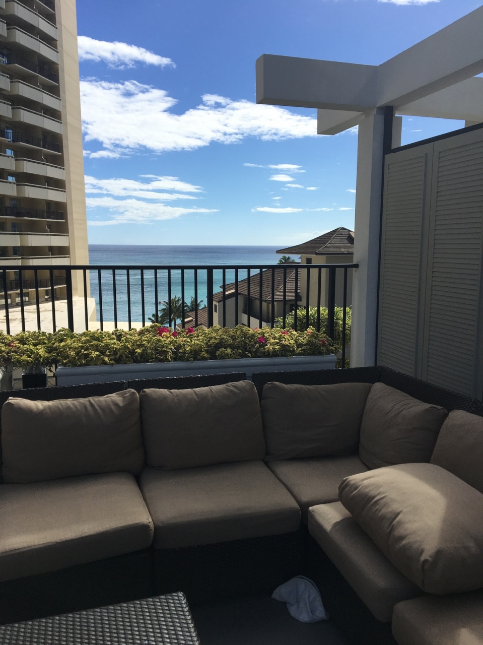 ワイキキパークホテルに宿泊しました。こちらはハレクラニの姉妹ホテルで、場所もすぐ側にあります。ただ敷地は広くないため、プールは上階にありました。リゾート感にはやや欠けますが、その分プール利用者が少ないようでいつも空いていました。プールサイドのカウチからは海が見えましたよ。こちらでドリンクを飲みながらゆっくり過ごすのが気に入りました。