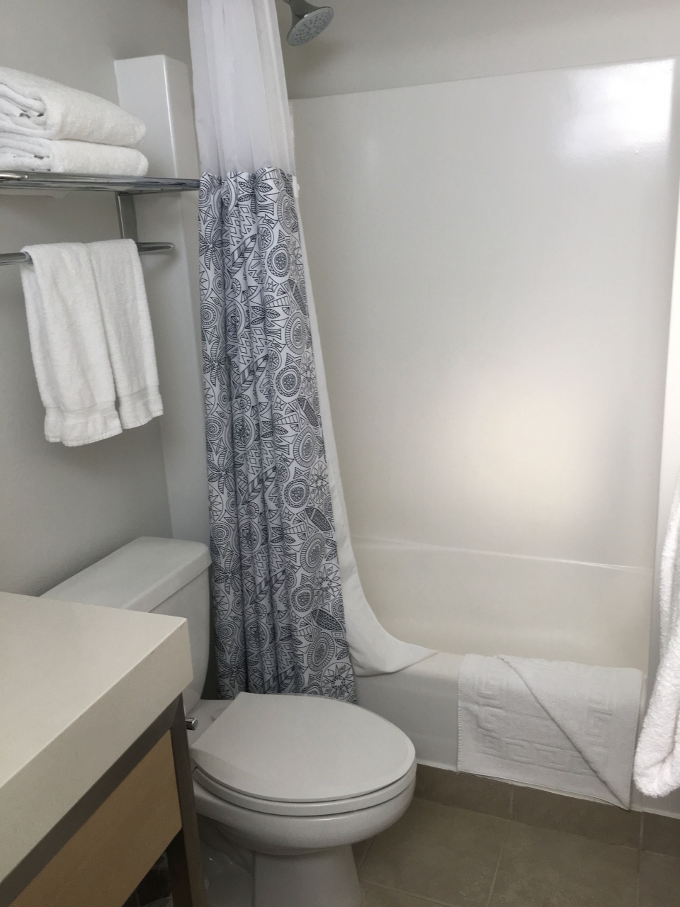 シャワーブースに申し訳ない程度にバスタブの淵がついてるような感じ。