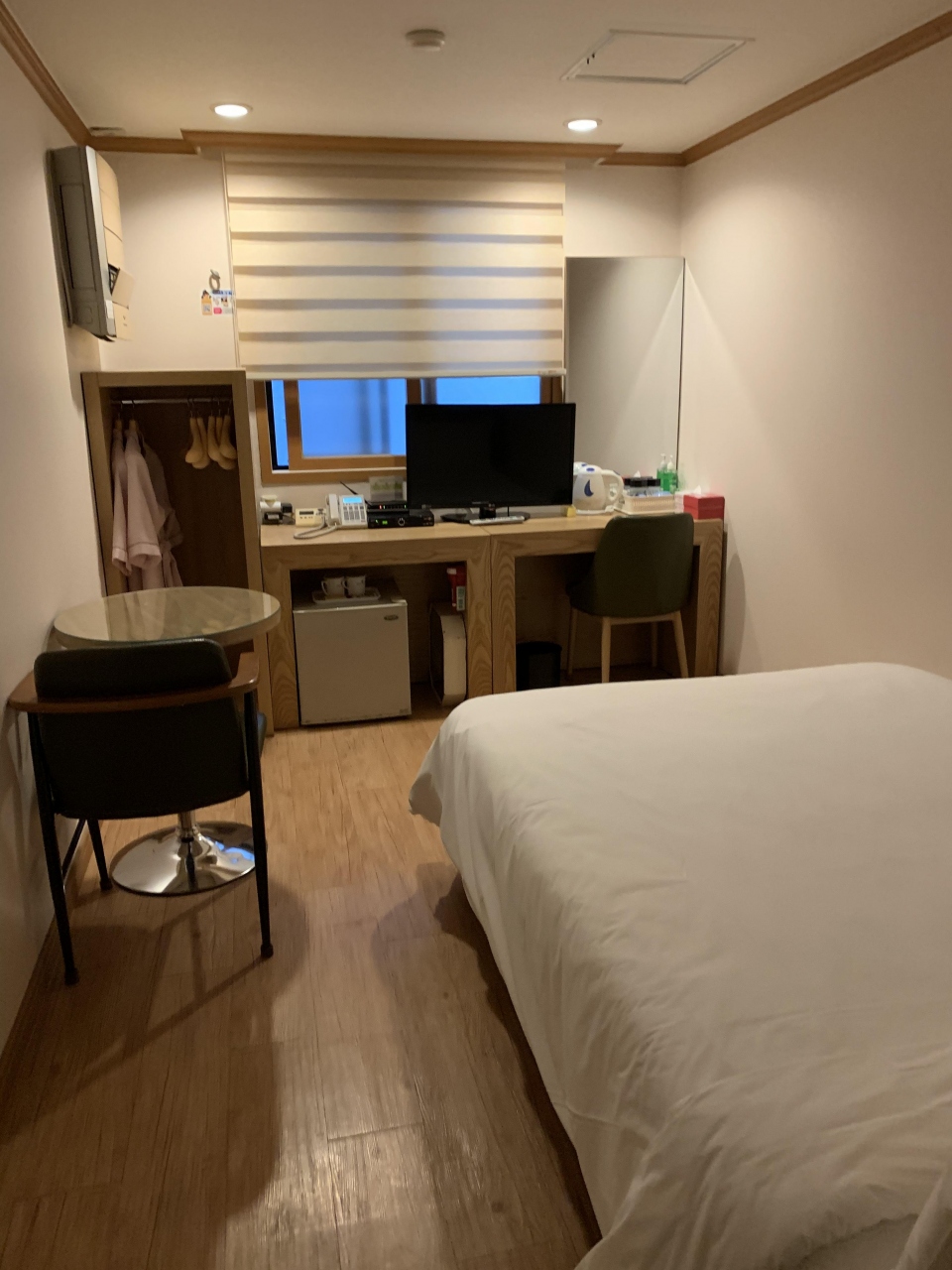 部屋は日本徒歩のビジネスホテルを少し広くしか感じです。トイレとシャワーはガラスで仕切られていますが、下までガラスがないのでトイレまで水浸しになります。
