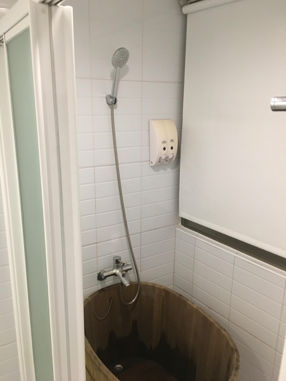 お風呂のバスタブがなんと桶で私も娘もびっくり。