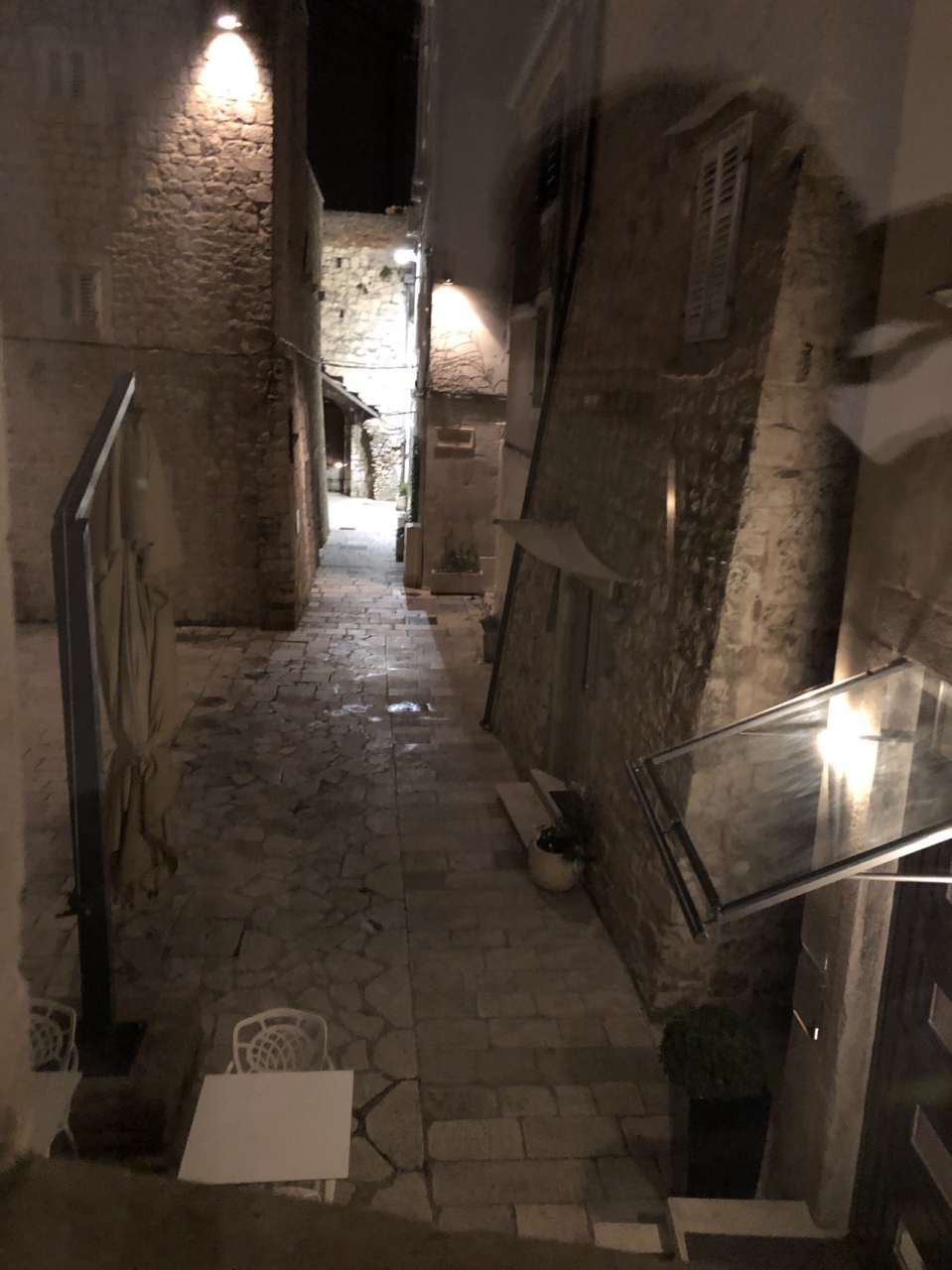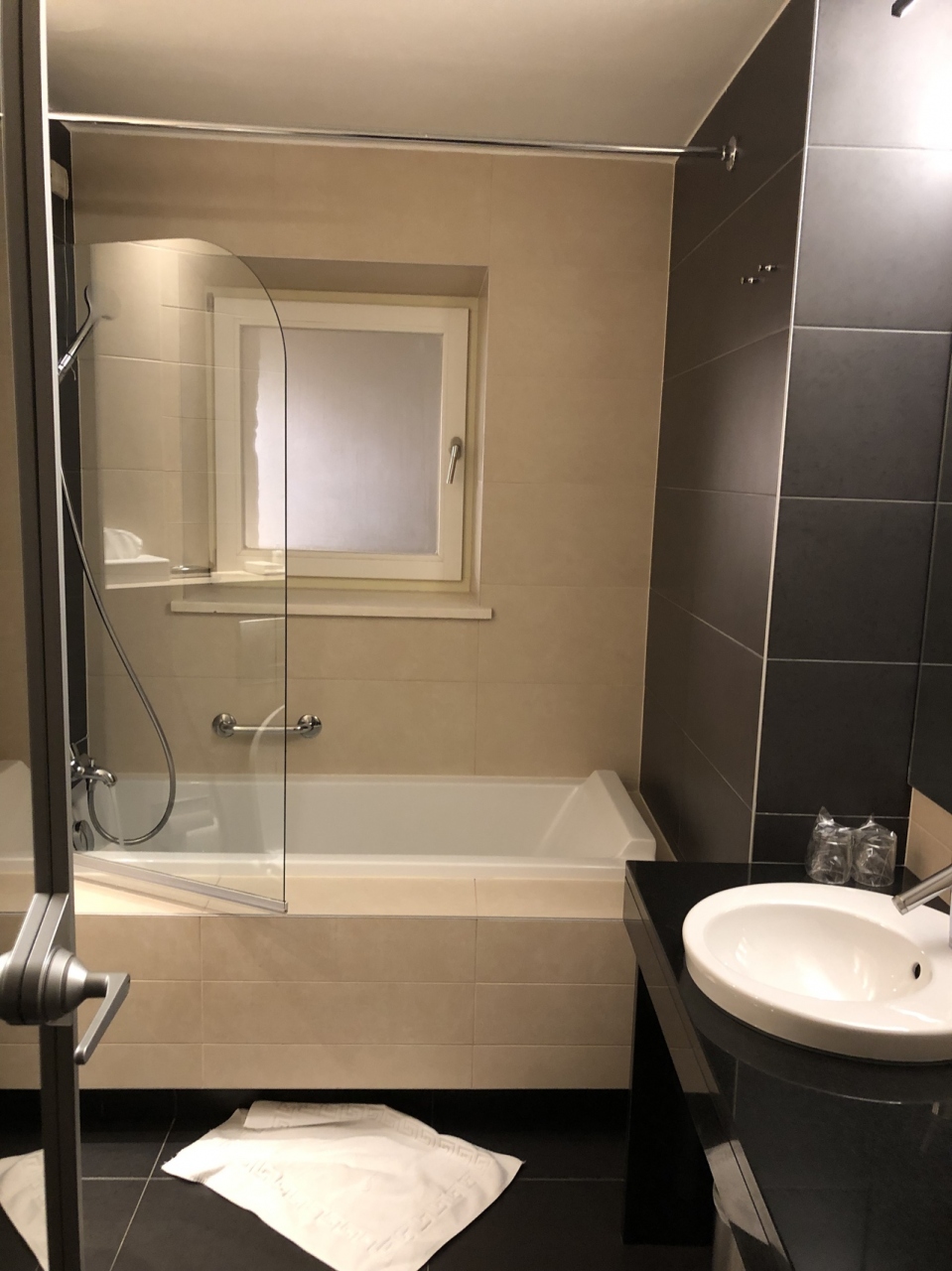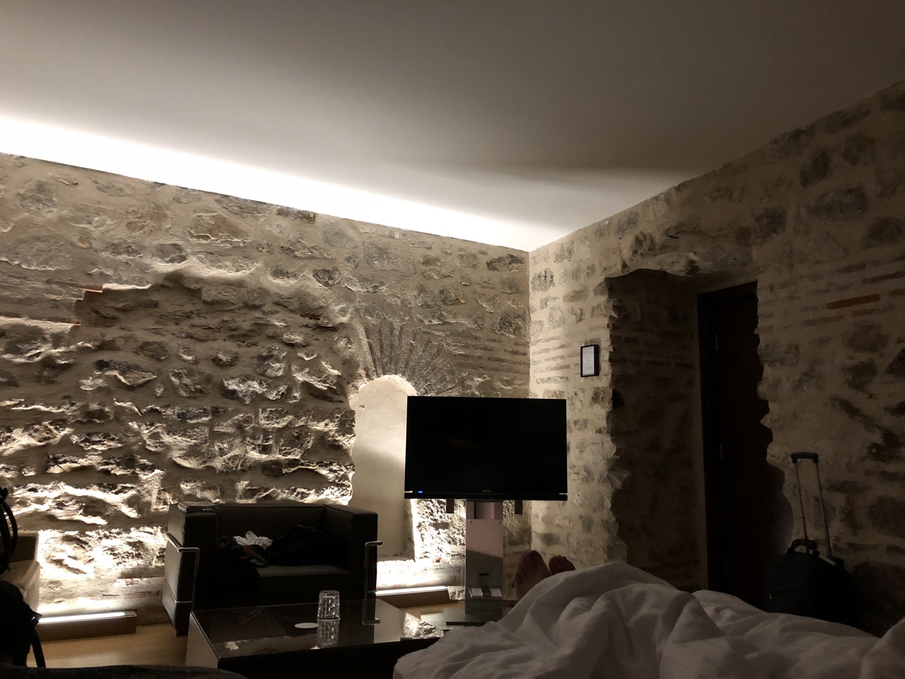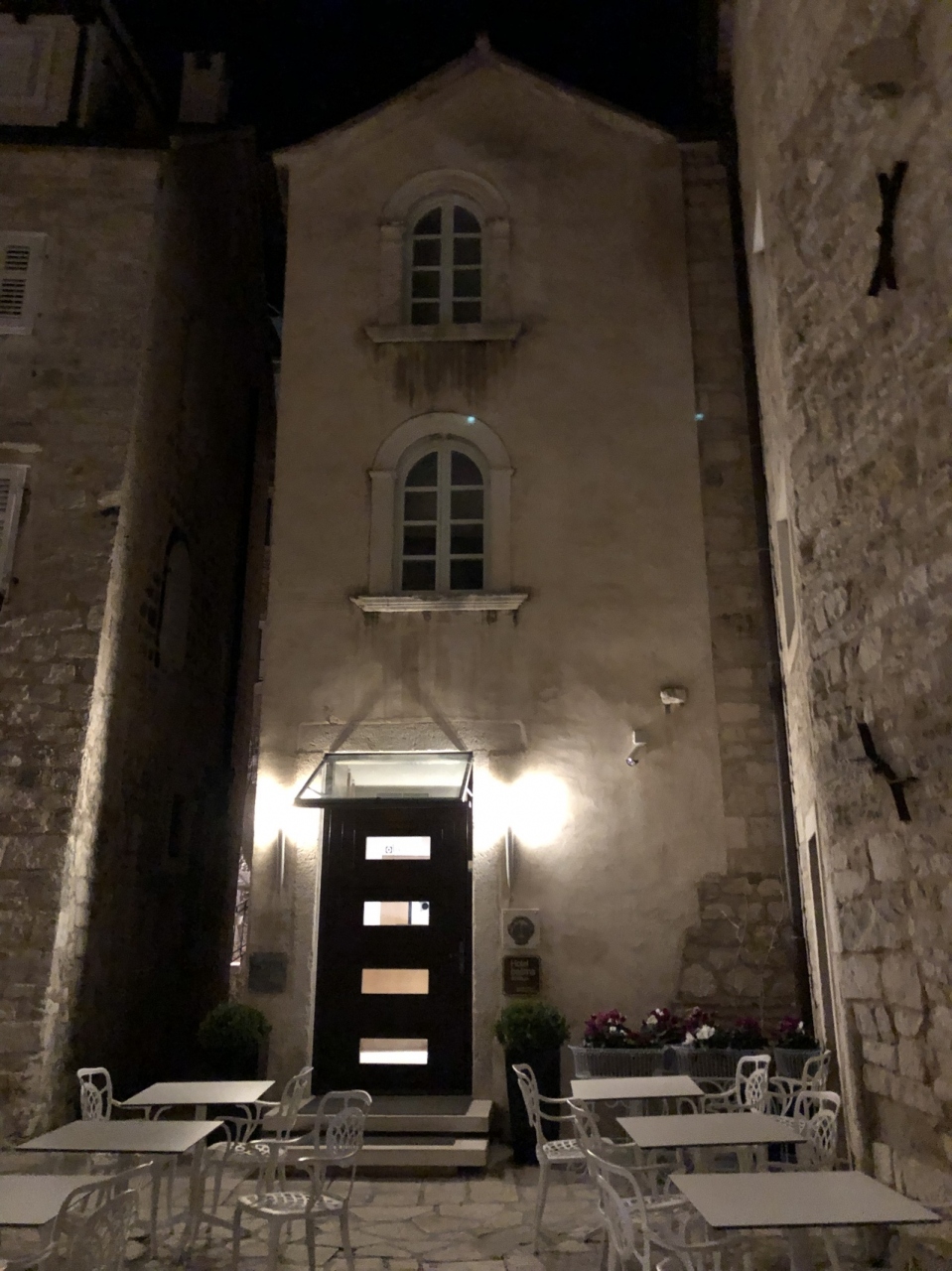 小さいけれど、歴史的な遺跡、ディオクレティアヌス宮殿内にあるホテルということで、少し高めでしたが、予約。午後ついて半日スプリット観光の拠点にしたかったのに、飛行機がキャンセルになり、バスで到着が遅れ夜8時前にやっと到着、早朝にチェックアウトしなければならなかったので、滞在が10時間足らずになってしまいました。それでも、このホテルで一晩すごせたのは、スプリットの街を味わうに十分でした。広くて、石の壁も、宮殿とマッチしており、空調はWi-Fi、シャワー室も近代的で使いやすかった。