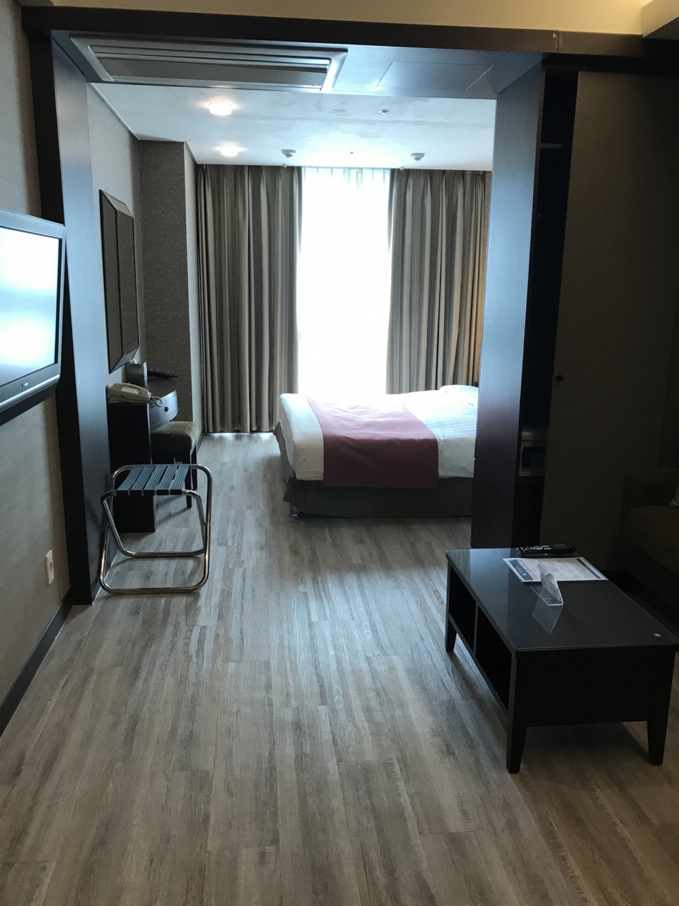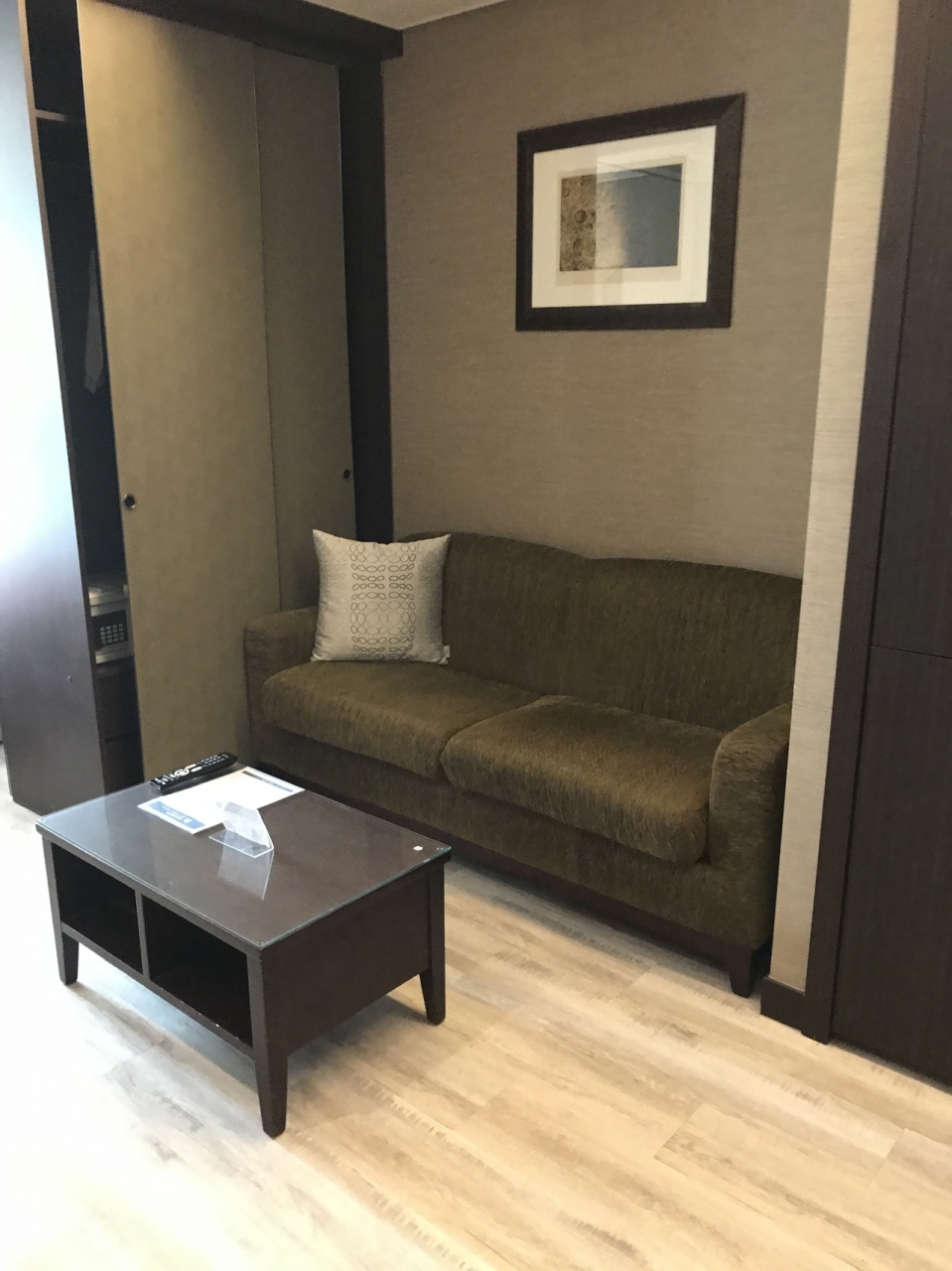ホテル地下にコンビニ2軒、ホテル前にカフェ2軒ありとても便利です。