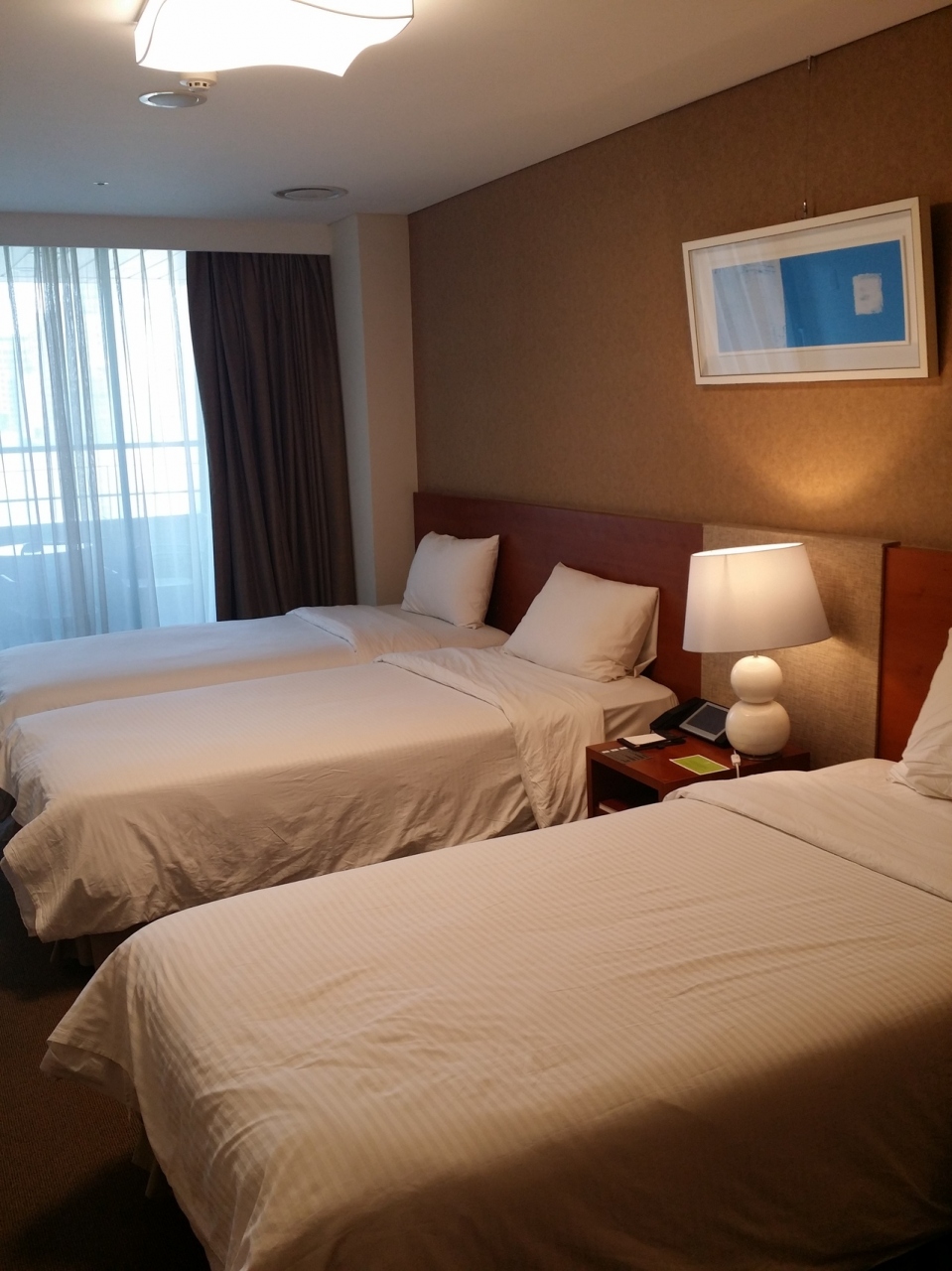(部屋には使い捨てスリッパ、歯ブラシ、ミネラルウォーター、廊下にはウォーターサーバーと製氷機がありました。)