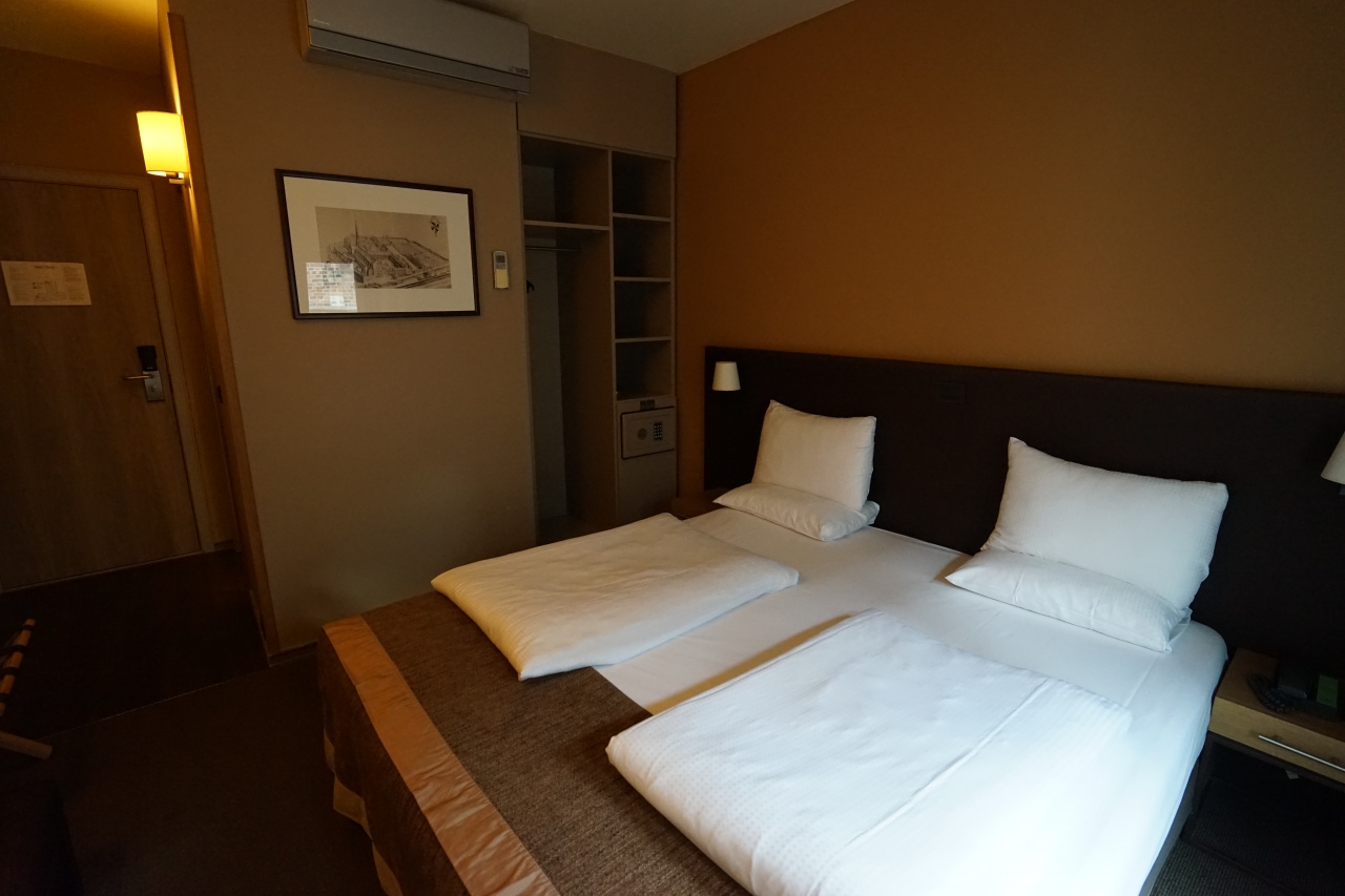 ツアーで2泊しました。ブルージュの街の中心地マルクト広場まで徒歩1~2分、ブルージュのシンボルであり、世界遺産にも登録されている鐘楼の真裏にあたる素晴らしいローケーションのホテルでした。治安も良く朝や夜の街歩きにも便利でした。