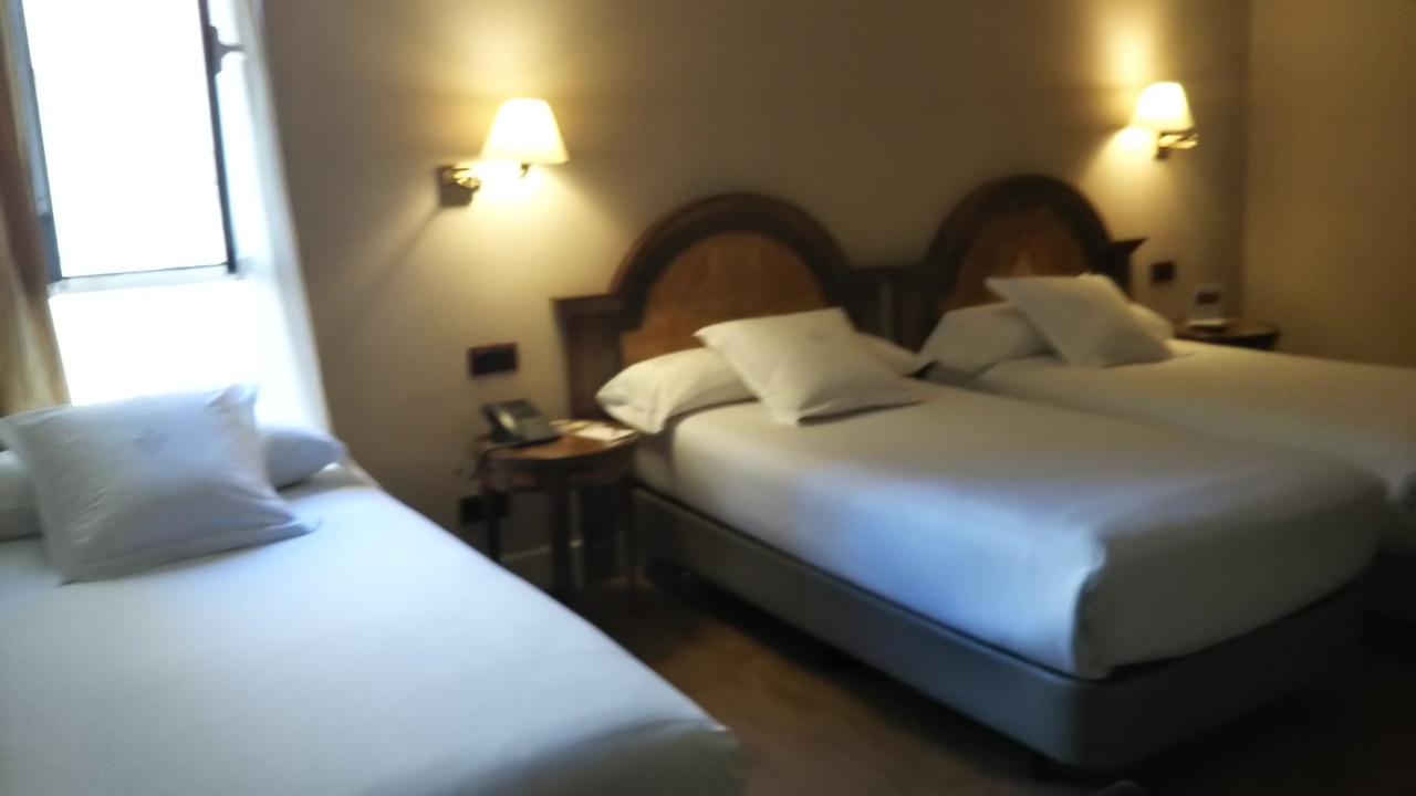 部屋は裏側で王宮ビューではなかったけど、トリプルで3つベッドがあっても十分な広さ。ミニ冷蔵庫あり。