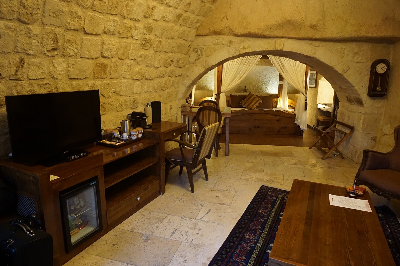 ウルギュップで一番良いホテルだと思います。部屋の内装はそれぞれ。予約の時点で選べます。床暖房がしっかりきいており、エアコンをつけなくても、快適に過ごせました。ハマムもあり、気軽に利用することが出来ました。ホテル自体が、山の上で、ウルギュップの中心と逆の方向を向いていますが、ローズバレーが綺麗に見れて、最高に綺麗でした。ウルギュップの中心へは、行きはホテルからの送迎が出ています。ただし、帰りは送迎が無く、タクシーで戻ってこなければなりません。