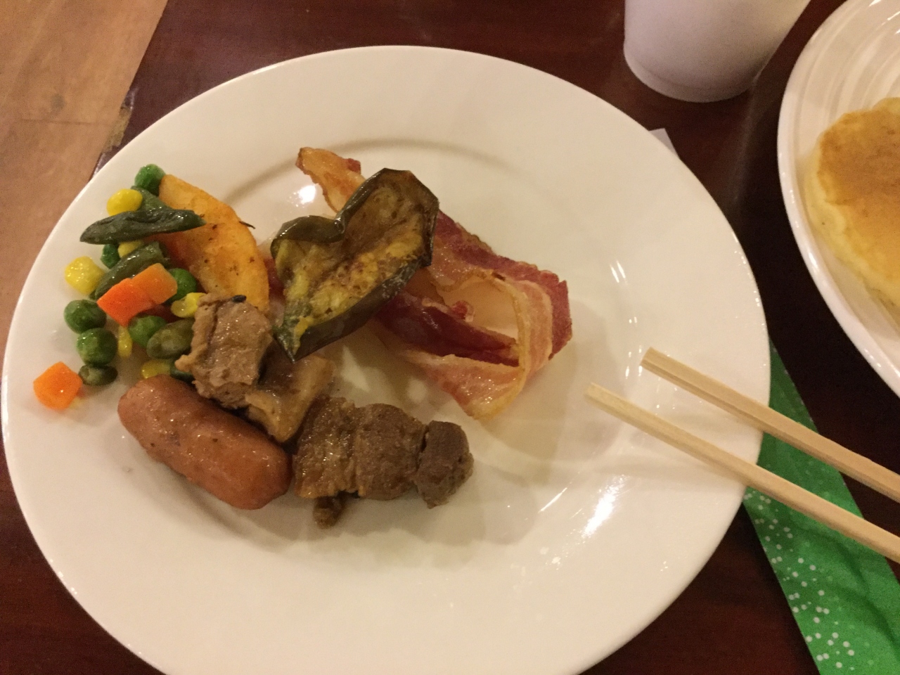朝食はそばが大好きになった。サラダも果物もあった。