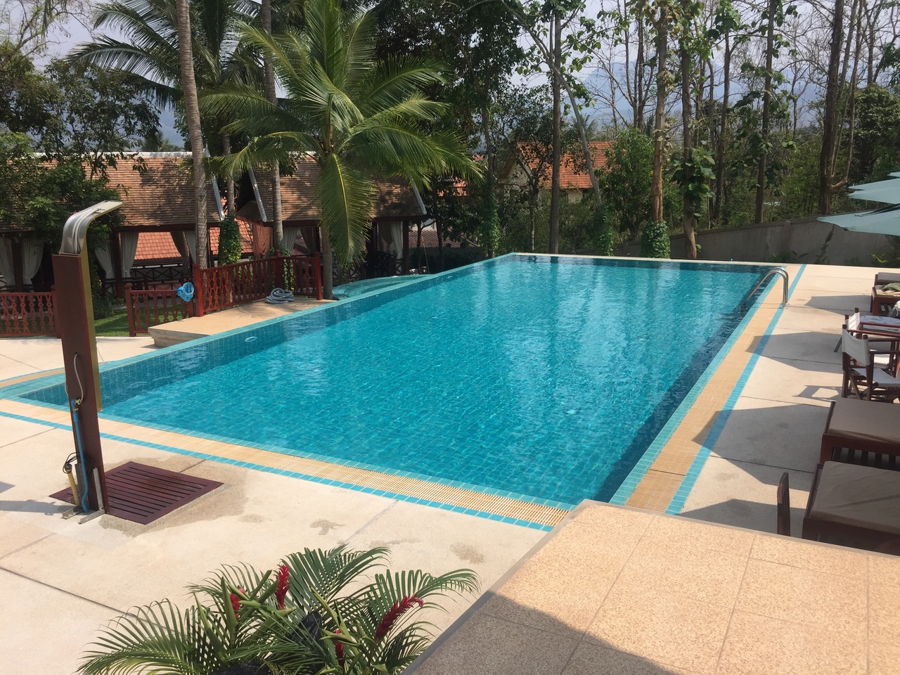 スイミングプールはパームツリースパで!バンブーブリッジを渡る必要がありますがそれはそれで!
