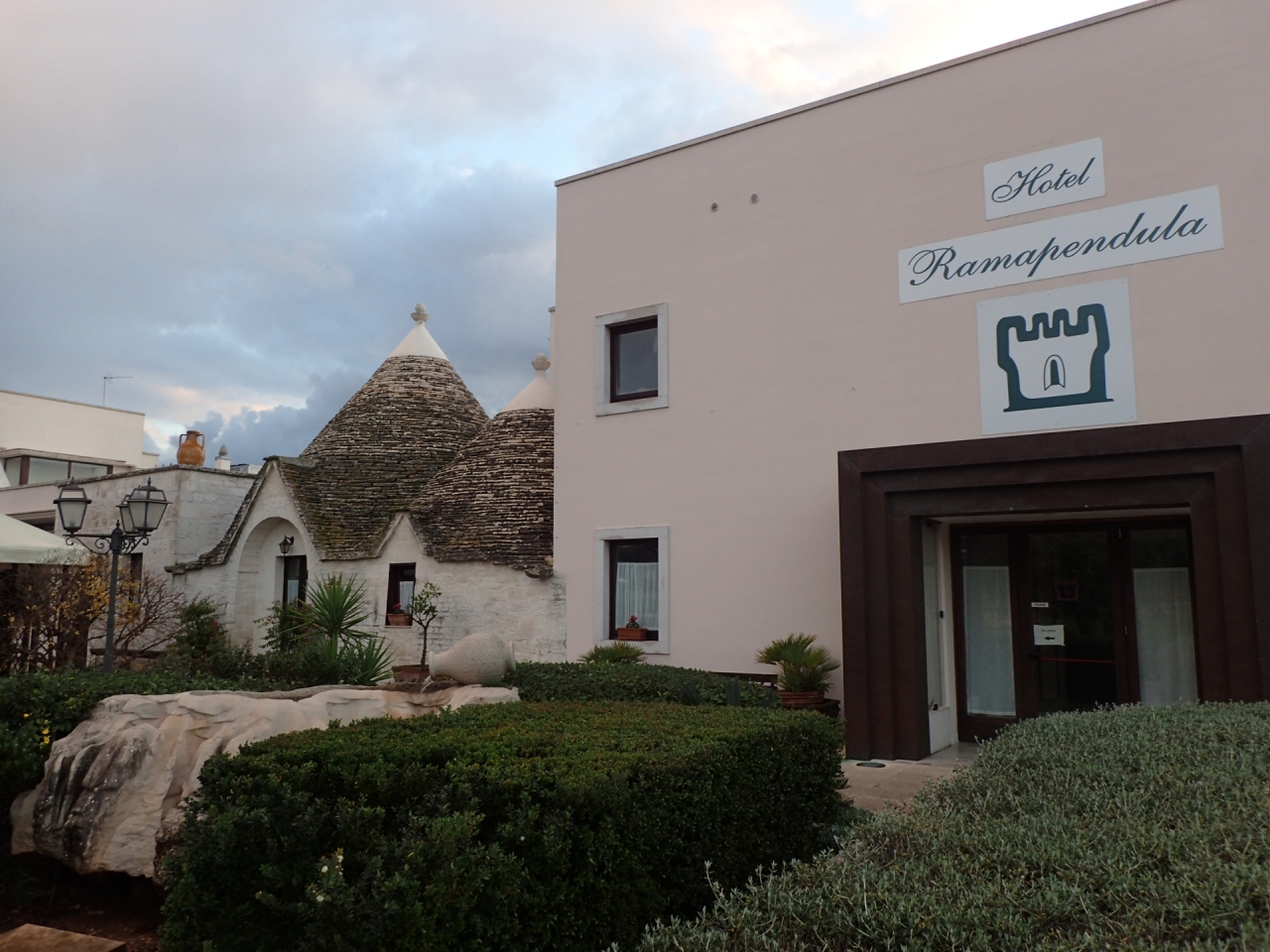 Alberobelloの中心部からは離れるが、Trulliが立ち並ぶ地区までは徒歩10分程度。ハイシーズンの昼間は観光客で溢れるとのことで、比較的少ない朝晩に散策するには、便利。昼と夜の2度、Trulliを散策したが、夜のTrulliもなかなか幻想的でした。