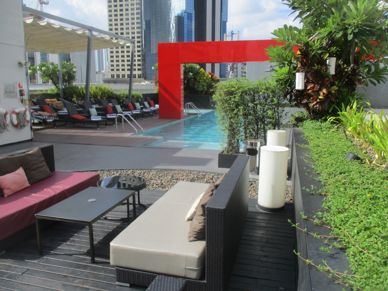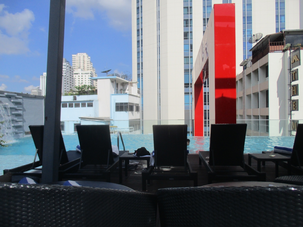 8階にはプールがありアルコールやソフトドリンクを提供するバーがありました。日当たりが良く、プールサイドにはチェアがたくさん置いてあり日光浴できました。プール用のバスタオルがたくさん置いてあるのが良かったです。5月のバンコクは非常に暑く、プールの水が温くなるぐらいでしたが、泳いだり昼寝したりしてくつろいげました。