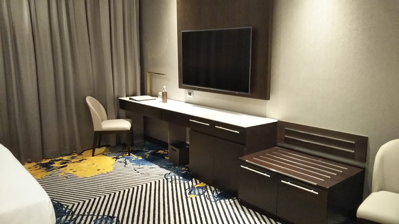 部屋からはチャオプラヤ川や夜景が眺められます。部屋には簡単なキッチンやアイロンがあり、長期の滞在者を意識しています。風呂は、浴槽とシャワーが分かれていていました。ソファーもあり、快適でした。温水洗浄機つき便座があればもっとよかったです