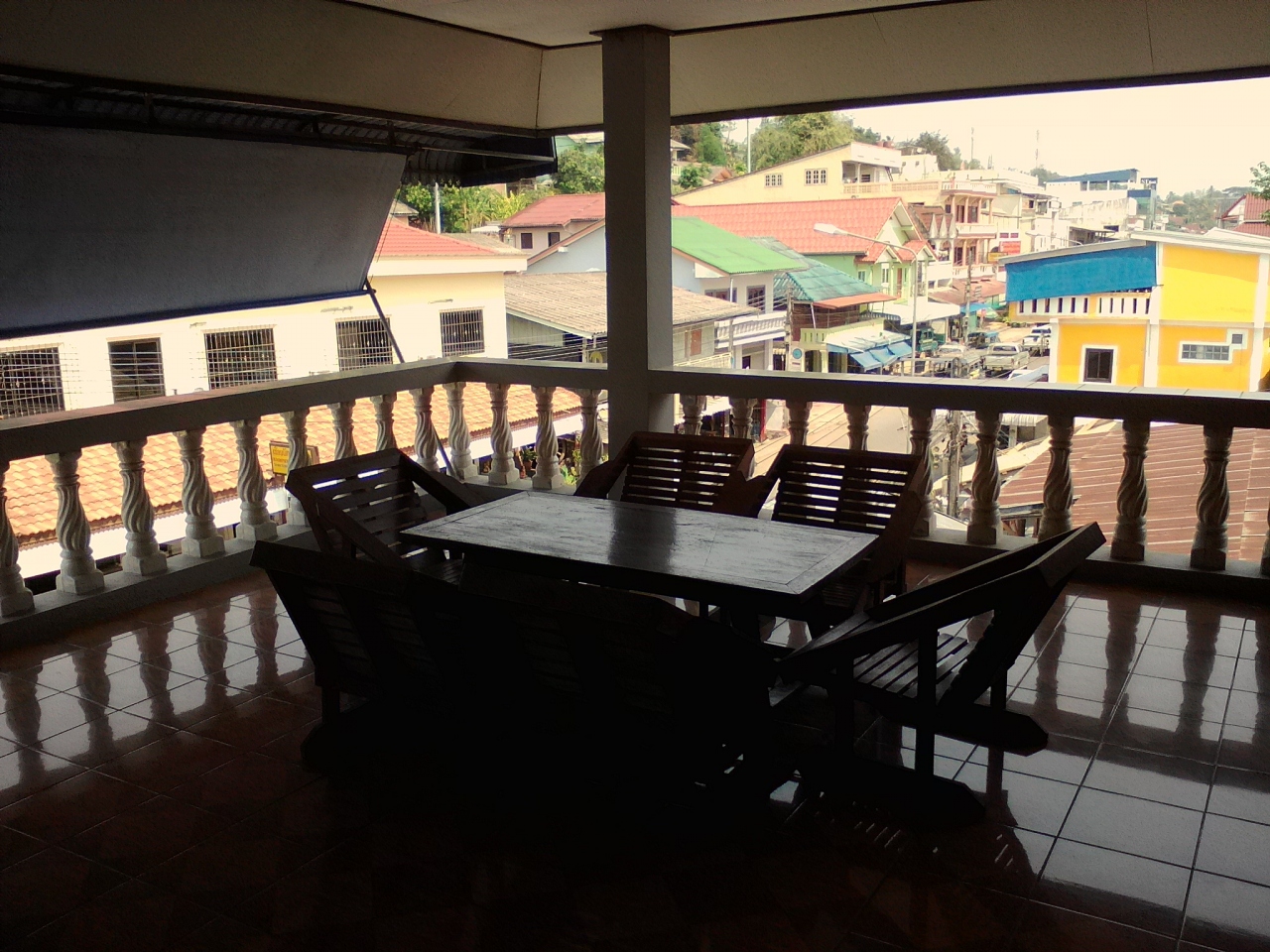 ファンのダブルで1泊8万kip(or 320B)。室内は広くてとても清潔、シンプルな感じもとてもいいです。シャワールームも広くて清潔です。3階にはくつろげるバルコニーがあります。他のG.Hに比べるとやや高いですが、その分しっかりした、間違いのないG.Hです。