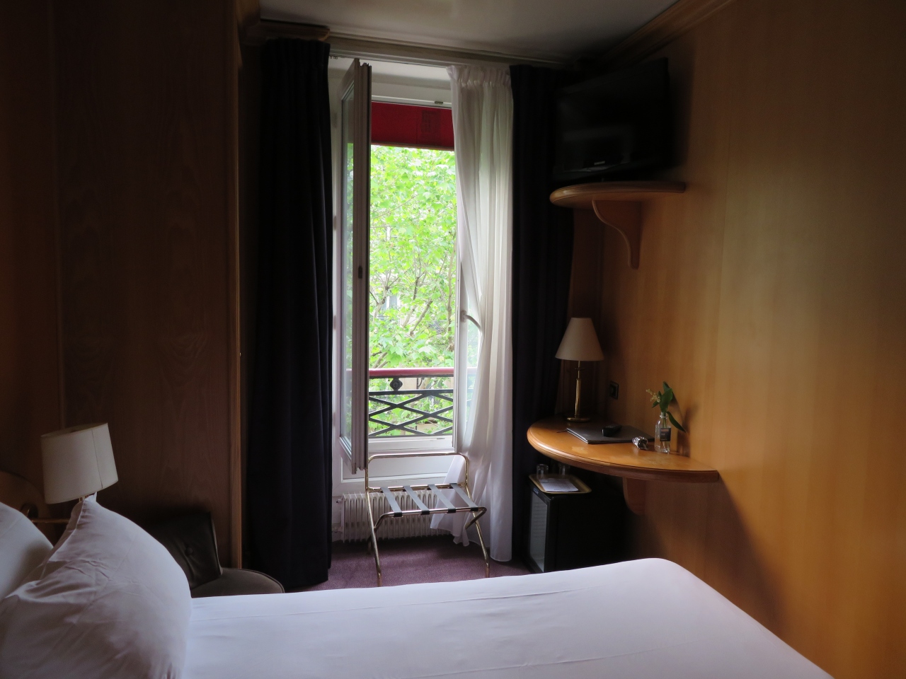 マドレーヌ寺院が窓から見えますが、街路樹が邪魔してます。