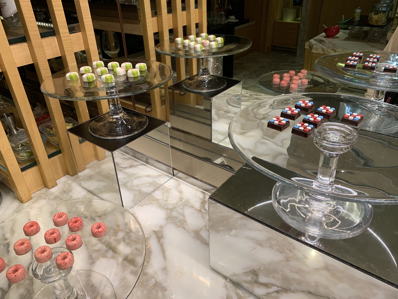 クラブルームに宿泊すると最上階のクラブラウンジが好きな時に使えます。こちらはなんとずーっと飲食できます!お酒好きな私たちは疲れてはすぐこちらにお世話になり、かなりのお酒をいただいてしまいました…
