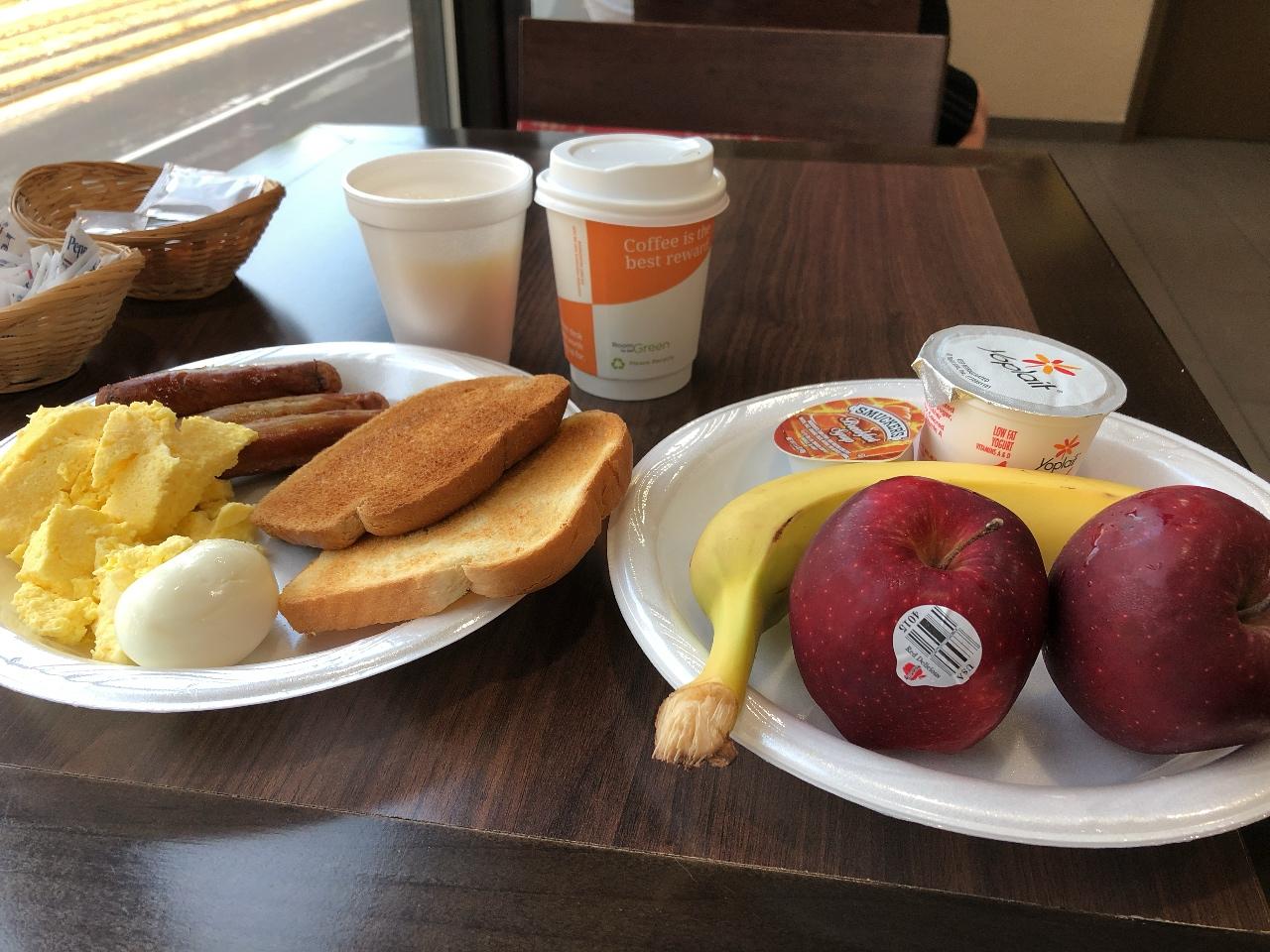 無料朝食があり、こちらはアメリカンブレックファーストとしては十分な量で満足した。
