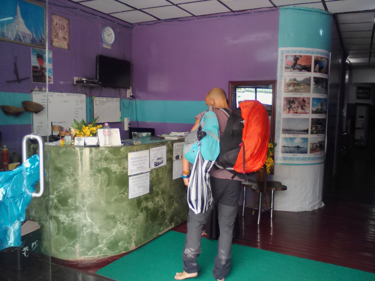 Booking.comやAgodaでも予約できます。予約せずに飛び込みで行った場合はドミ(A/C)は1万k、ダブル(A/C、トイレシャワー付き)は2万kとなります。朝食付き。どちらもこの時見た予約サイトよりは安かったです。立地は市内中心部やや北側。市場が近く、各方面へのバス乗り場(降り場)がある時計塔からも歩いて行ける距離なので立地はいいと思います。ミャンマーで予約サイトを活用してるくらいの宿ですから英語も通じるし、その他対応はちゃんとしてると思います。