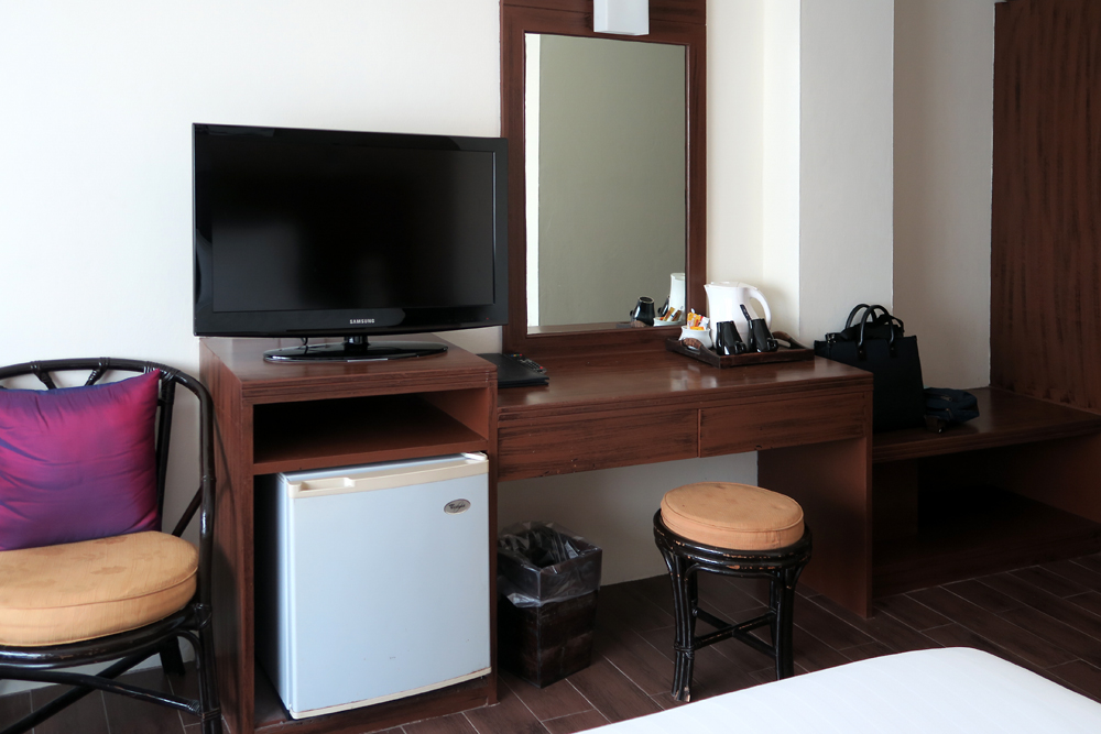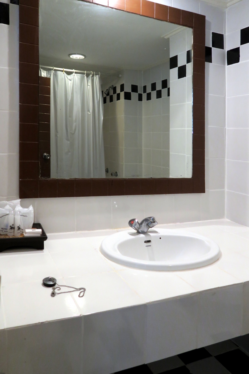 バスルームの給湯は水と湯を別々に調整する2栓式で、使用中に湯温が多少変化する。アサインされた409号室は、近所のバービアからの音が深夜までうるさく、私はすぐ眠りにつけたが気にする人は不快と感じるかもしれない。