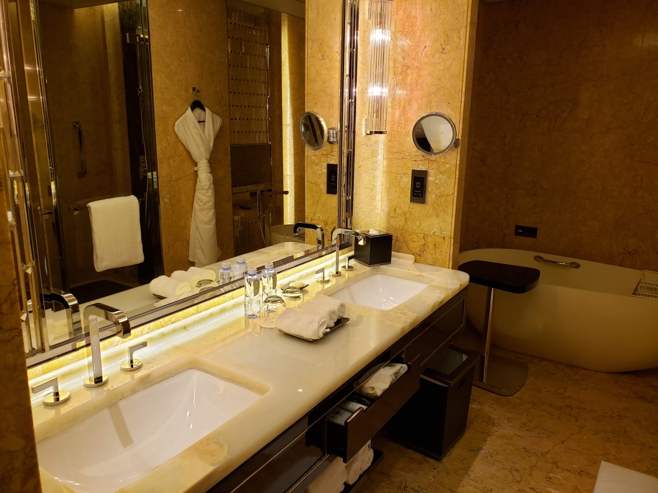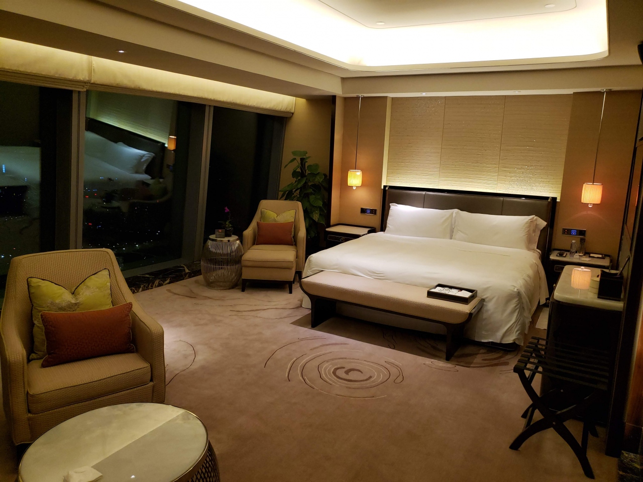 古今東西のホテルの中でも高さでいうならトップ5に入るホテル。こちらのホテル宿泊目当てで、何も用事はなくとも深圳へ行きました。京基100という100階建てのビルに入っています。運よく込々で1380元という破格レートで宿泊できました。ロビーは96階にあって、それは恐ろしいほどの眺めです。三菱製の直通エレベーターでした。高級感はさすがのセントレジス。マリオットチタニウムでグランドシティービューキングへアップグレード。スイートを期待していたので肩透かしでしたが、こちらの部屋もガラス窓4面で相当の迫力でよかったです。浴室は総大理石でかなりの高級感。今までで宿泊したホテルでも一番ではないかしらん。マリオットプラチナ以上特典のイブニングカクテルは参加しそびれたが、69元でビールとおつまみをオーダーして夜景を満喫した。朝食はパンがおいしかったがそれ以外はそれなり。総じて深圳の勢いを感じる滞在になった。ロシア人のタチアナさんはいろいろ話しかけてくれた。ただもう一度宿泊しるかといわれると一度で十分かな、リピートするタイプのホテルではないかな。