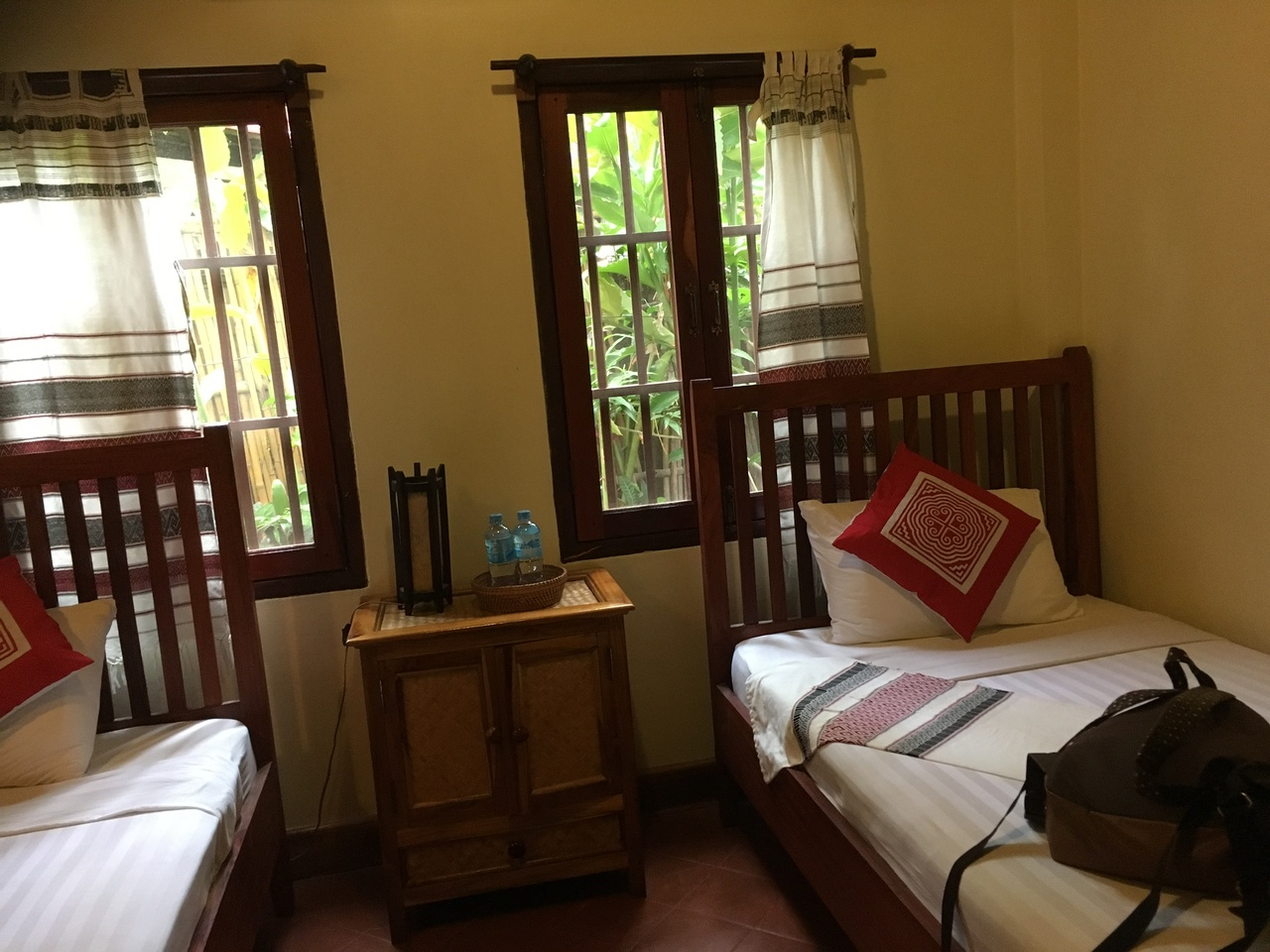王宮近く、朝市やナイトマーケットにも近い場所にありながら静かなロッジです。朝ごはんはパンと卵料理、フルーツとコーヒーでシンプルですが、美味しかったです。ただ毎朝同じなので、3泊目は近くの朝市で買って食べたりしました。ちょっと残念だったのは、湯沸かし器の調整が難しくて、最初は中々上手くお湯が出なかったことです。