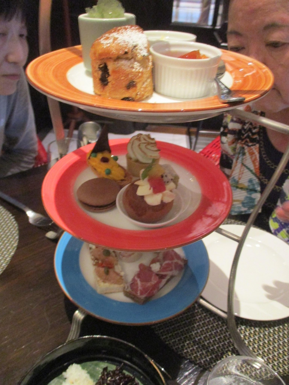①は、よくあるアフタヌーンの3段皿に盛られたスタイル