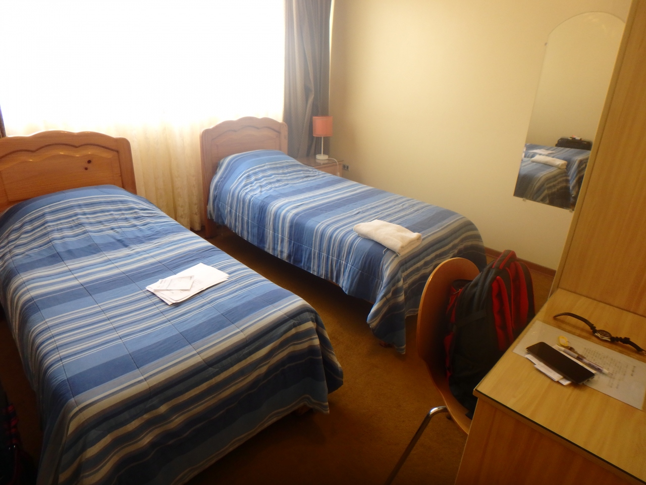 リマのホルヘ・チャベス空港から車で30分程度、静かな住宅街にあります。看板や案内が出ていないので、どれがペンションかわかりにくい。安全上、看板を出さないのかも知れません。近くには大型スーパーやモールもあり買い物には便利。レストランも多数あります。ペンションは増築したのか、やや複雑な形状ですが、慣れれば大丈夫です。部屋やバスルームはやや古いですが、まあ許容範囲かな。朝食も毎朝いろいろ出るので有難いです。