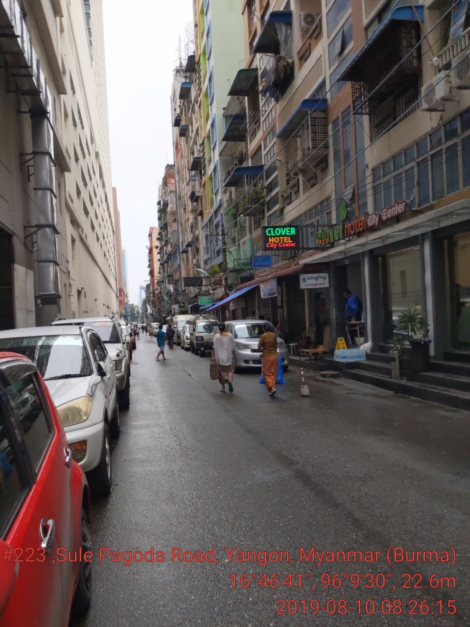 6)ロケーションが良いか悪いかは別として中心ど真ん中です。表通りに面したシャングリラホテルの建物の一筋裏手の路地は一方通行でありながら左右に路上駐車されてますので、歩行者はやってくる車両の警笛を鳴らされ端へ追いやられる始末です。