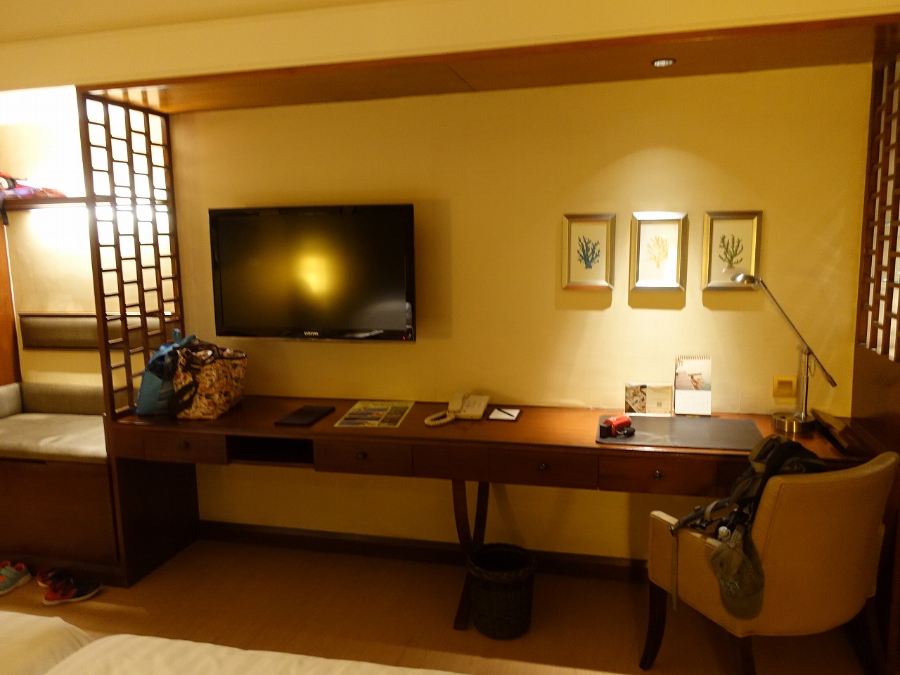 予約するのが遅かったため、オーシャンウィングを予約することができず、部屋の眺めも裏側の景色しか見れない部屋でしたが、部屋の掃除がきれいに行き届いており、大変満足できました。また、ホテルの庭の整備がきちんとされており、デイユースで利用した他のホテルとは格段に違うと感じました。何よりも1番素晴らしかったのは、ホテルの従業員の人たちの態度で、どの人たちも笑顔で挨拶をしてくれ、本当に気持ちよかったです。不備があった際の対応もすばやく、他の人の口コミで聞いていた以上にすばらしいホスピタリティーを感じることができました。ベッドメイクの人も、子供たちにタオルで象や亀の作り方を教えてくれました。注文としては、部屋の氷バケツにトングを付けて欲しいことくらいです。残念な点としては、4人で宿泊しているのに、何度か水やタオルが3人分しかなかったことです。これをフロントに告げるとすぐに対処してもらえました。日本人スタッフも3人ぐらいおり、非常にありがたかったです。