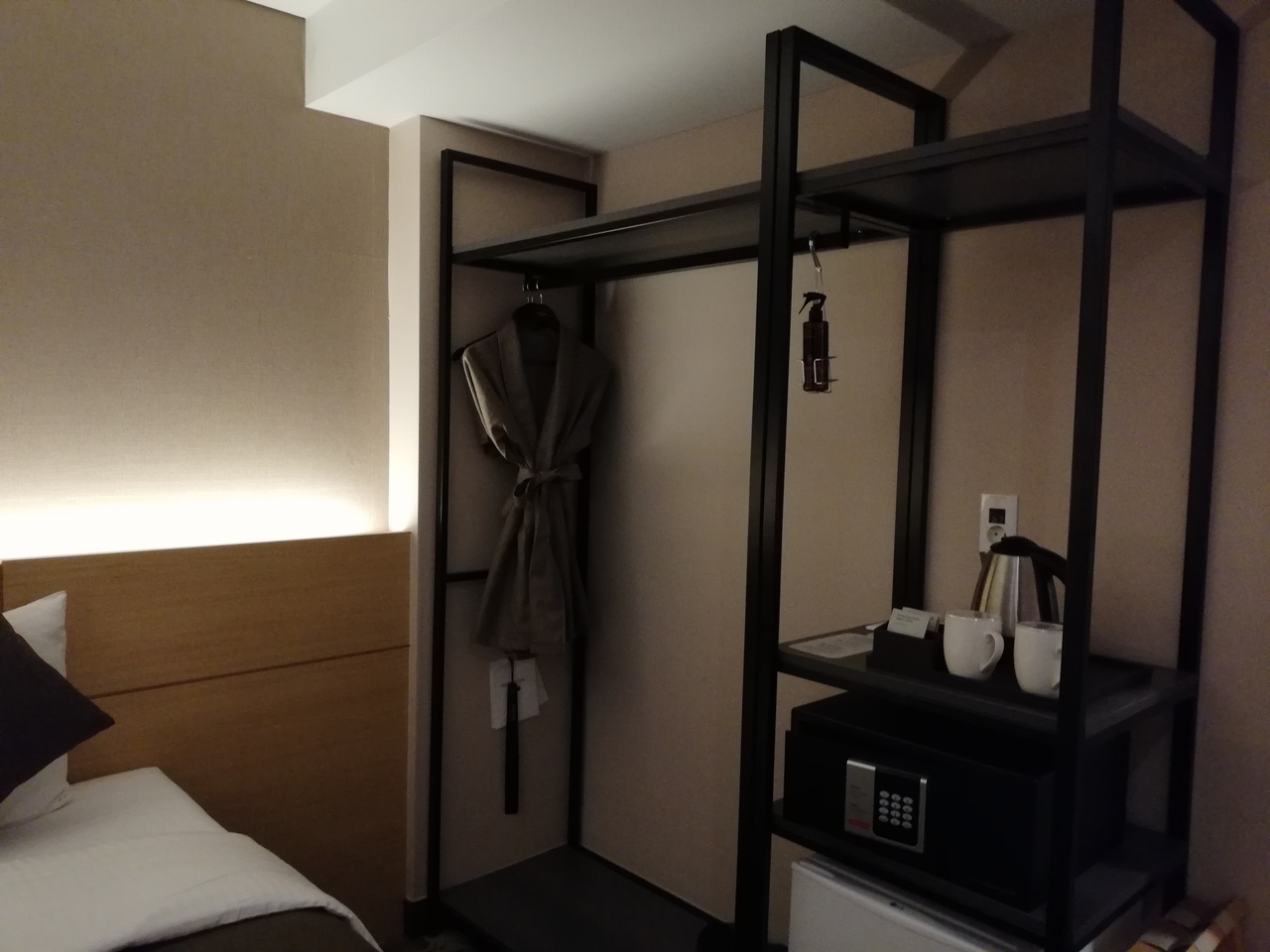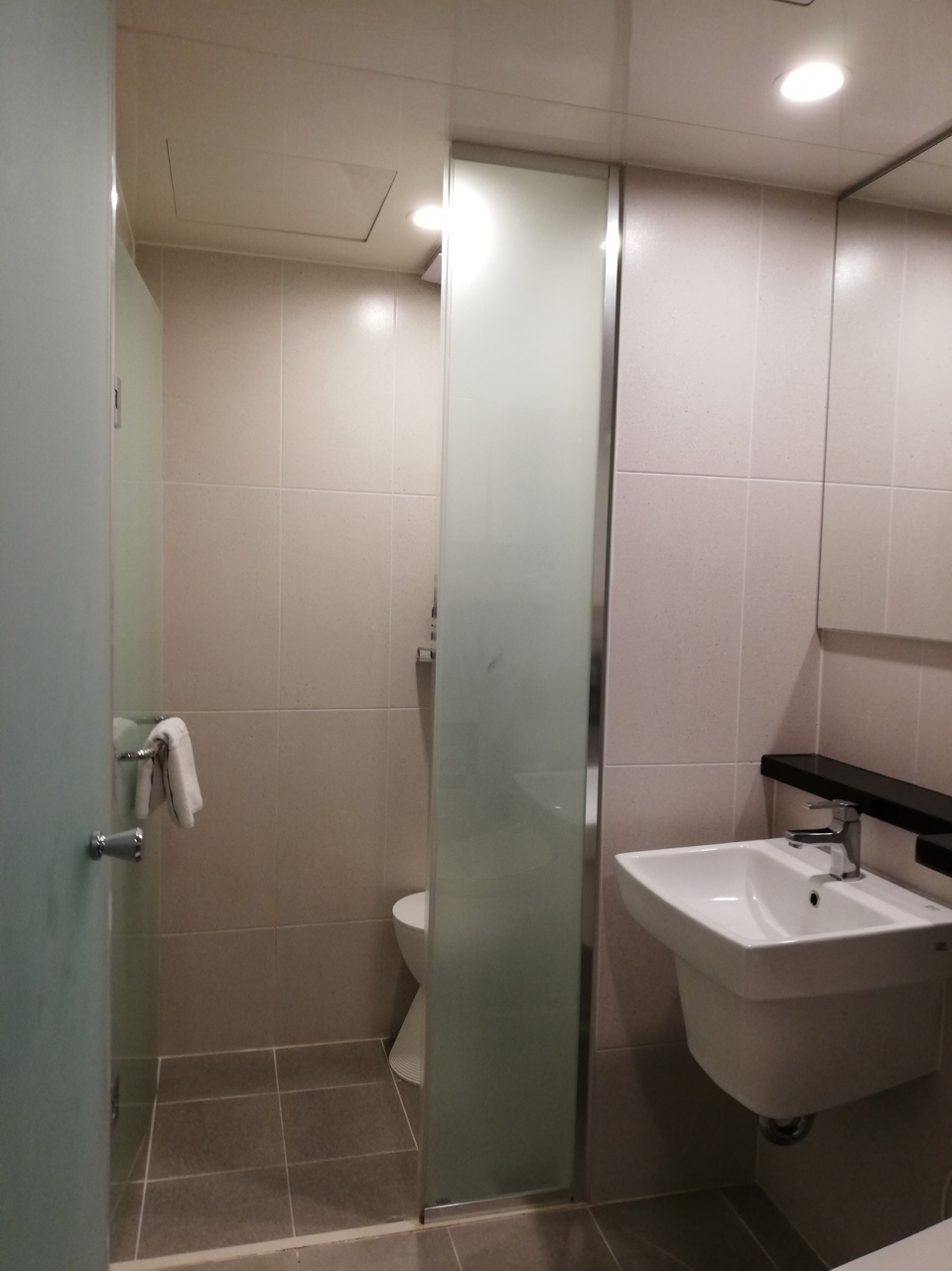 バス停から10m位の所にありますが、入口がちょっと解りづらいです。ホテルの下にはコンビニCUがあります。シャンプーリンスボディーソープはシェアするタイプ、歯ブラシ、スリッパ、湯沸かしポットも有りました。無料のペットボトルのお水も毎日もらえました。フロントエリアには、無料で使えるマッサージ機が二台と電子レンジ、無料で飲めるコーヒーが有りました。