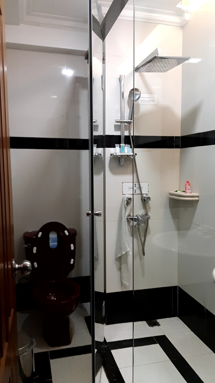 バストイレはシャワールームになっているが、湯量は全然足らないのと、湯温調整が非常に難しい。このホテルの一番の難点でした。