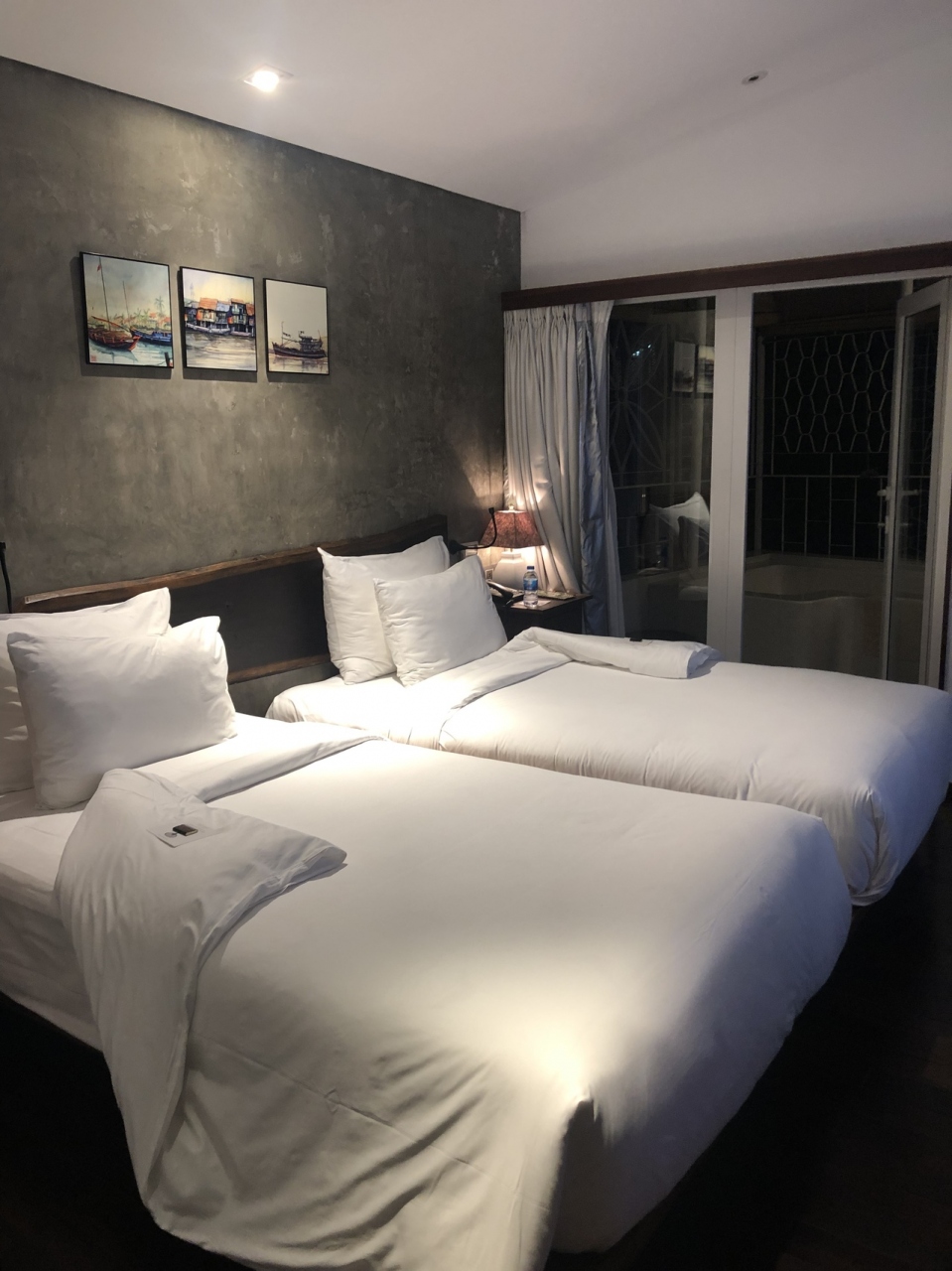 ベランダにはジャグジー付きのバスがついていましたが、ホテルの川側に新しい建物が工事中のようで外は見えないし、なんなら工事中の作業員が見える位(一応すだれついてますが、隙間から見える)