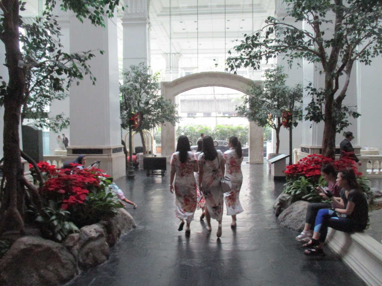 クリスマスの時期にグランド ハイアット エラワン バンコクに滞在しました。エントランス付近にはポインセチアがきれいに置かれ、ロビーには大きいクリスマスツリーやメルヘンティックな飾りがあり、きれいだったので記念撮影をしてみました。仏教の国なのですが、タイでもクリスマスは特別なイベントのようです。