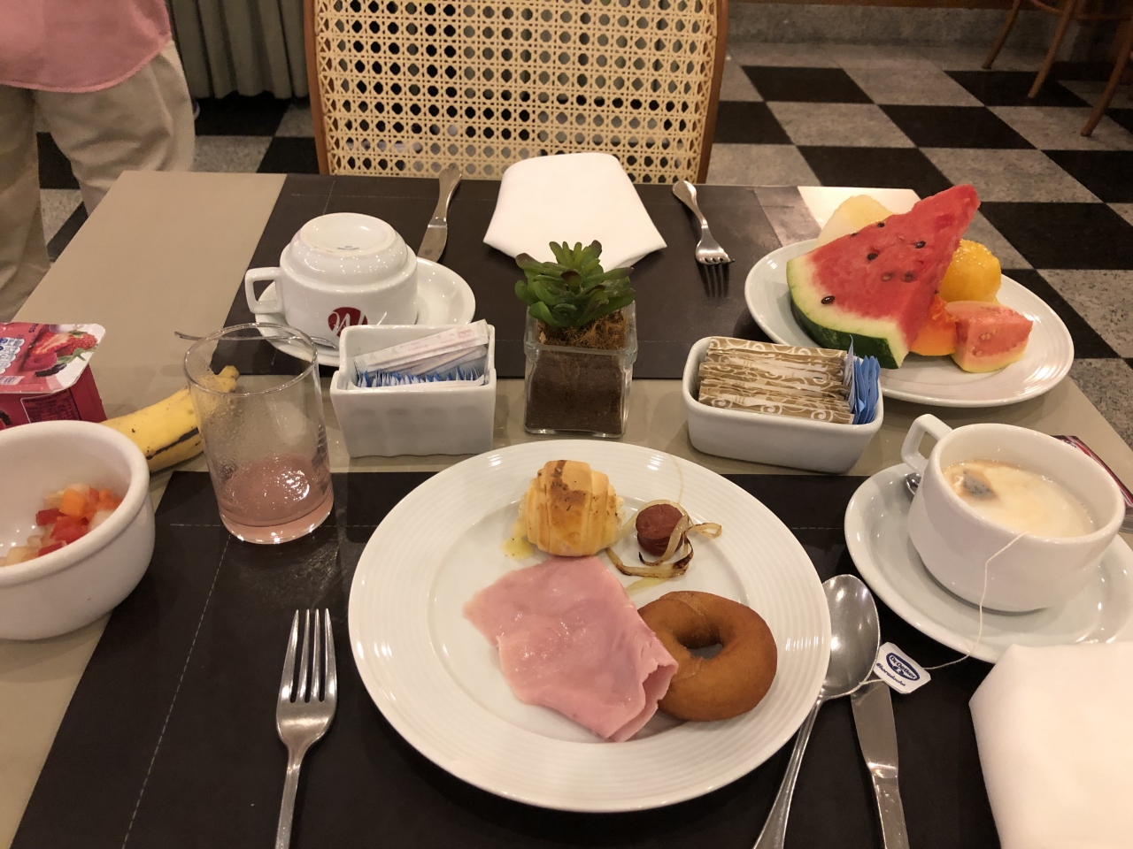 ツアーで宿泊しました。部屋はツイン。シャワーとトイレ、ビデがありました。キャリーを広げるのに十分な広さがありました。食事は、夜も朝もブッフェで、味は普通。フルーツが多く嬉しかったです。近くにスーパーがあり、買い物に便利でした。