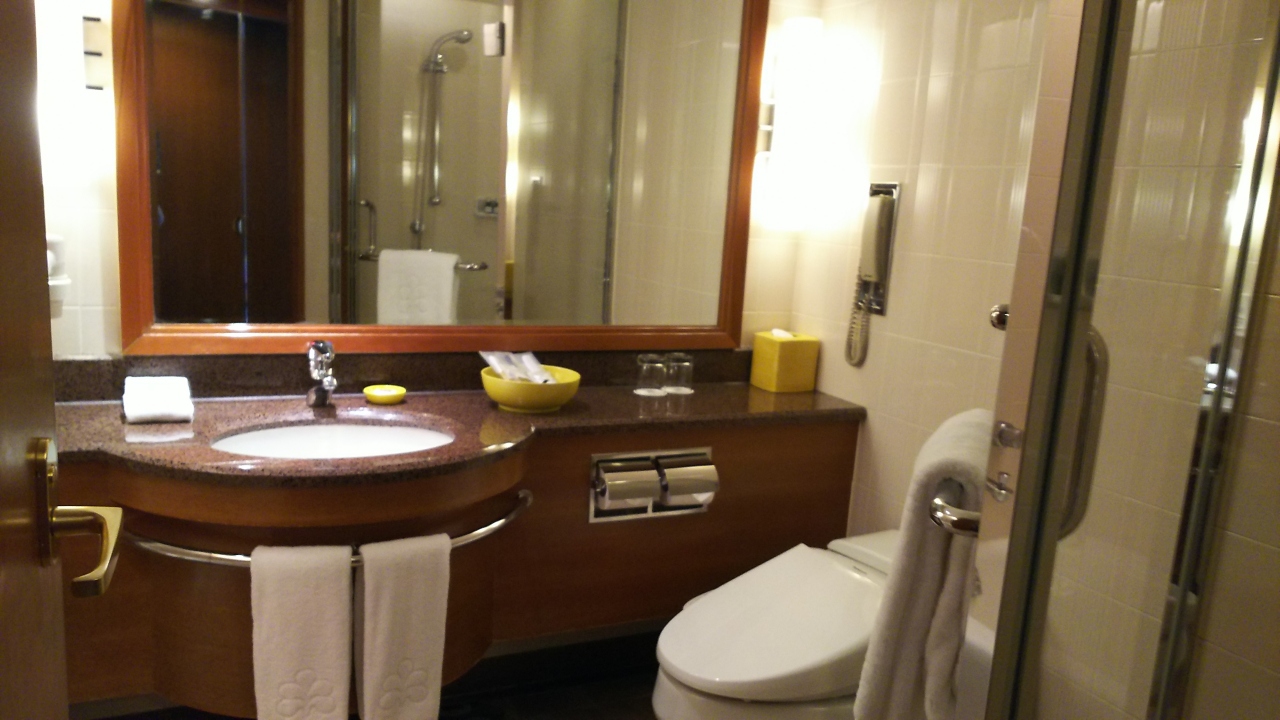 部屋が広くゆったりしていて心地いい。デスクも付いていて便利。アメニティも可愛いボトル入りトイレもシャワートイレ。中山広場まで徒歩15分位で、街歩きにも便利。路面電車の駅も近い。大連駅まで1駅でいける。コンビニのローソン併設もありがたかった。