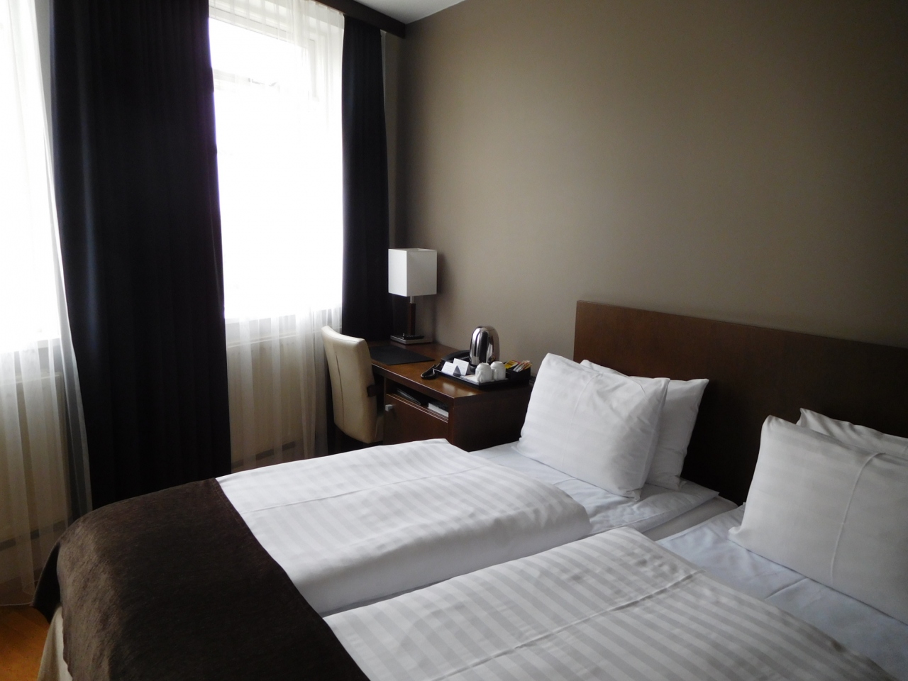 お部屋はシックです。けっこう部屋数も多いです。アイスランドのホテルには珍しく、冷蔵庫もありました。
