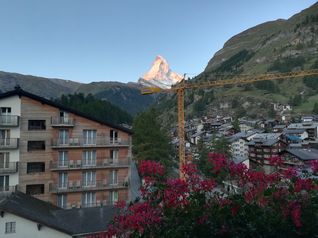 ジュニアスイートの最上階に泊まりました。お天気さえ大丈夫なら、きれいにマッターホルンを見ることができます。テラスもありますが、イスはあるけどテーブルがないのが残念でした。2019年9月現在、日本人橋にクレーンがあり、このホテルからの眺めもクレーン入りとなります。お天気が悪い日等、フロントスタッフさんは親切にアドバイスをくれました。