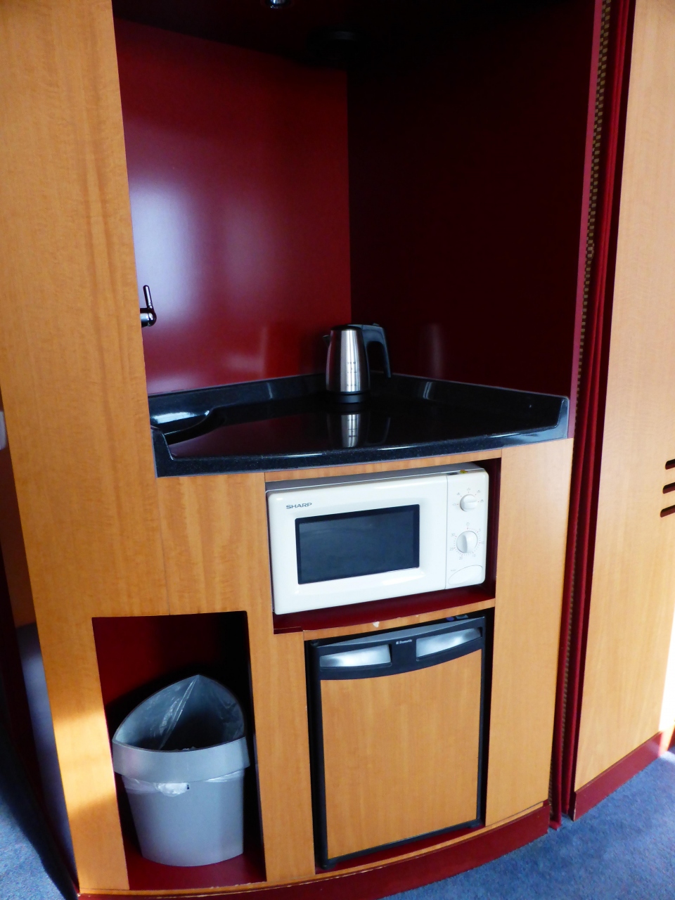 バスタブや洗面所とトイレは別、冷蔵庫、湯沸かしポット、電子レンジもあるので連泊した際にも便利そうです。