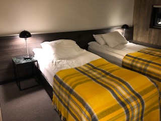 落ち着いた雰囲気のホテルでした。タイミングが合えばホテルを出た所からオーロラが見えると聞いて、数回出てみたものの風が強く雲も途切れず雨もパラついてきて断念。朝ごはんにワッフルメーカーでワッフルを手作りできました。