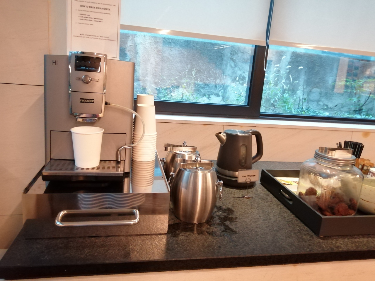 先月もきました。今回は、ツィンルームでしたので、アメニティルームには、ドアがなかったので、親しい中でないと、辛いかも。バスローブ、アメニティグッズ揃っています。フロントフロアでは、コーヒーが飲めるし、手作りクッキーは、美味しいです。また機会あったら、泊まります。