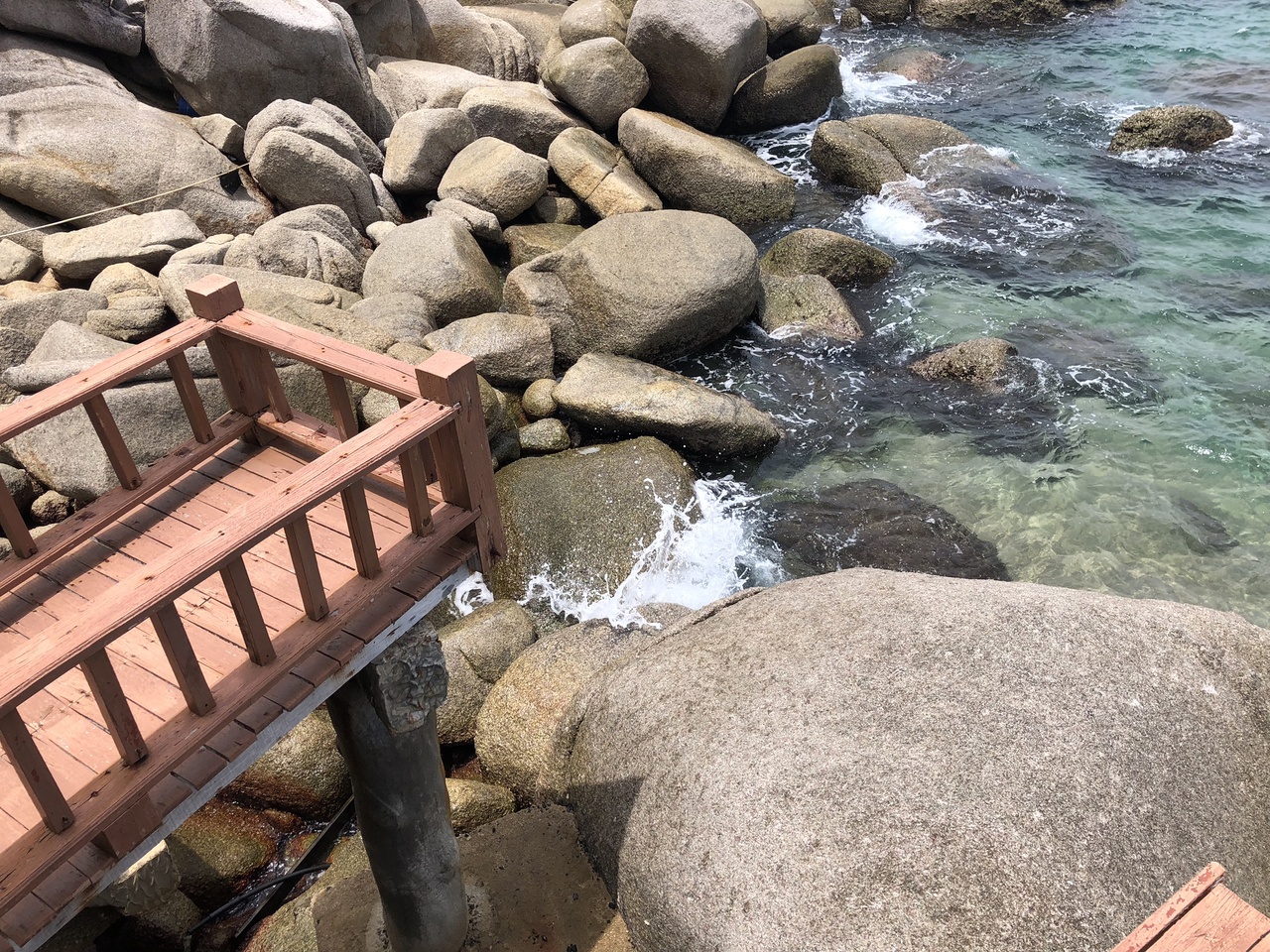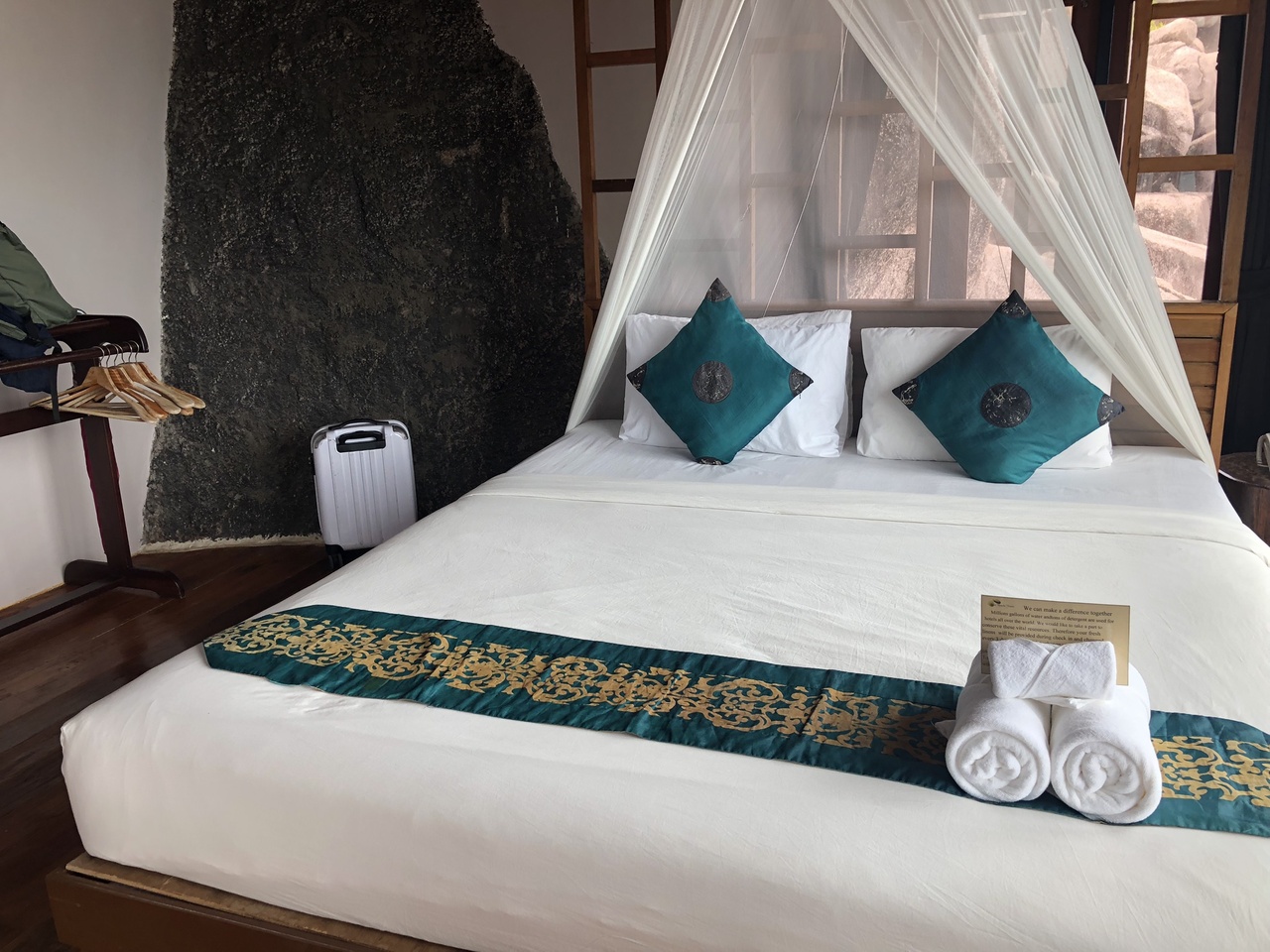 たまたま、嵐に遭遇して、1番海側の部屋だったので、窓に波が打ち付けるわ、床上浸水するわで1晩、行きた心地がしなかった! タオ島の高級リゾートは、崖にコテージが散開しているので、階段の昇り降りは、覚悟してどうぞ!