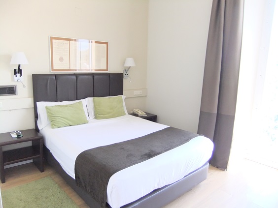 マヨール広場から歩いて行きましたが、上り坂で歩道は狭い感じです。広場から2番バスに乗ると2つ目の停留所がホテルを少し過ぎたところにありますので、荷物が多い場合は利用してはいかがでしょうか。マウンテンビューの部屋からの眺めは良く、スペースにもゆとりがありました。