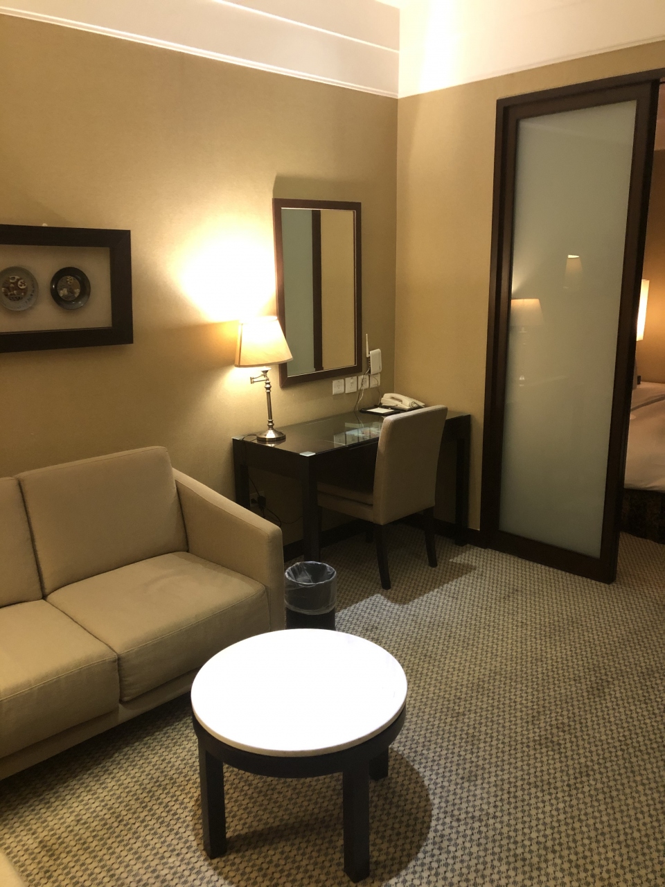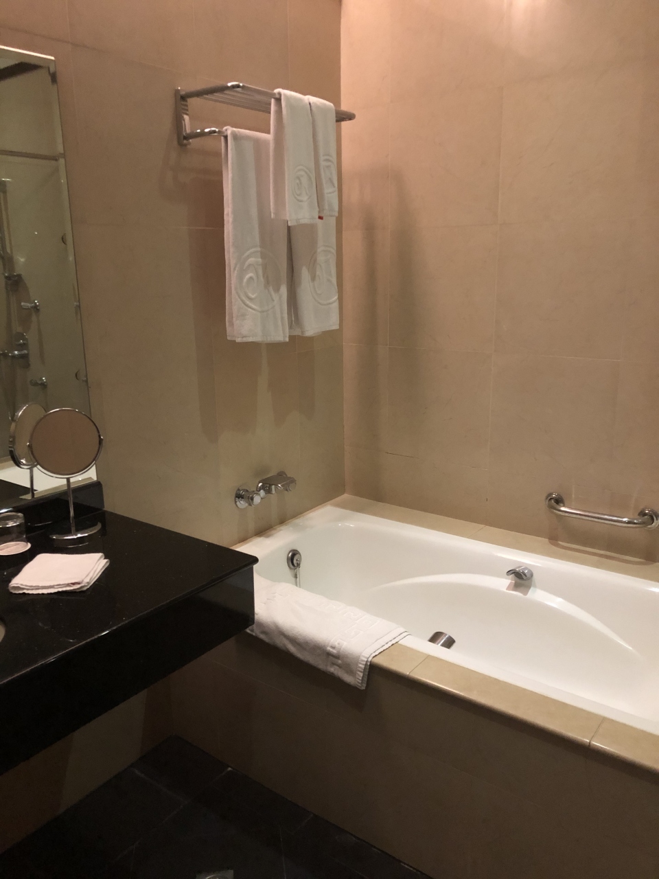 駅、三越に近い街中にありました。ホテルは古い感じですが広かったです。バス・トイレのスペースも不自然に広い感じでした。ホテルの周りにコンビニや店もたくさんあります。