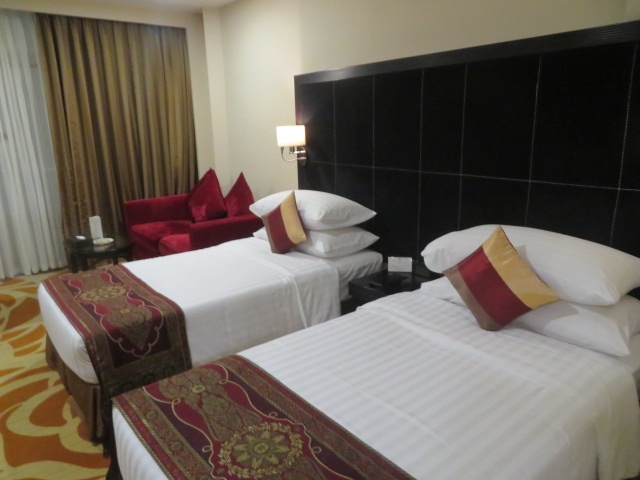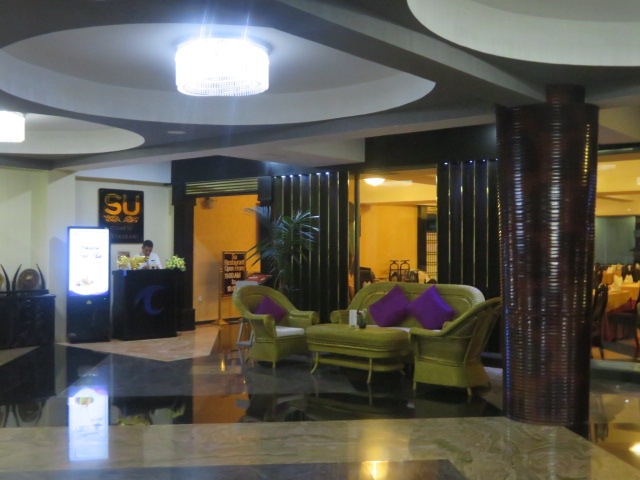 ヤンゴン市街にあります、観光旅行で2泊しました、ショッピングセンターの上部に客室があります、4階がフロントでロビー・レストランもあり、5階以上に客室がありました。