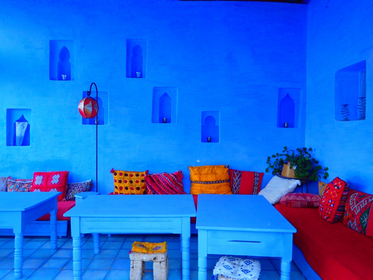 モッロコの現地ツアー、ラノーリアトラベルでツアーを頼む際に、こちらのホテルも組み込んでもらった。外観も内装もとにかくシャウエンらしくて可愛い。特に青いテラスで食べる朝食は最高。インスタスポットも近く、早朝は空いているため写真取り放題。だが早朝に鍵を開けて外に出る際は、スタッフに一言声をかけていかないと、閉められてしまうかもしれないので注意。