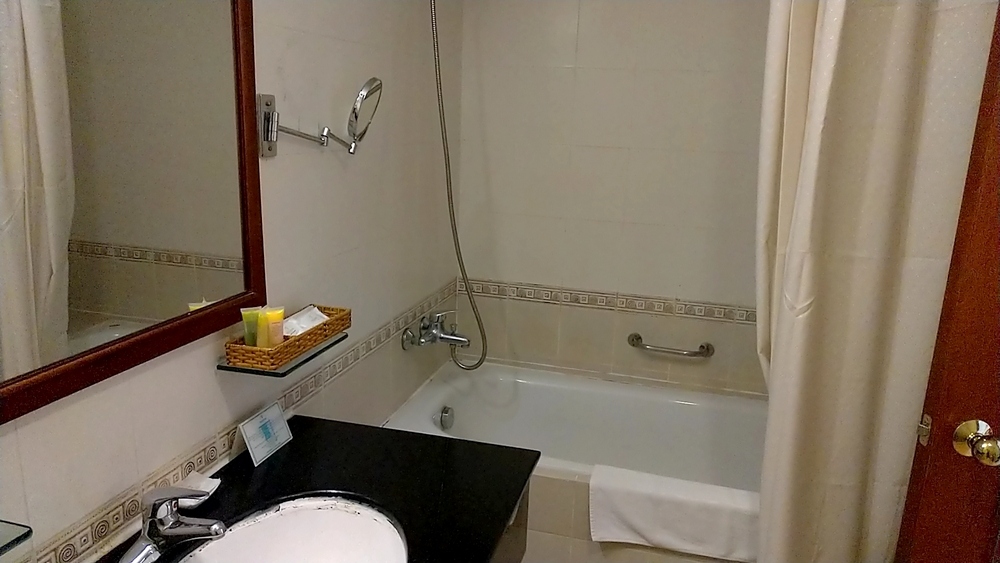 バスタブがついているのがありがたいです。ただ、今回のお部屋は水回りがあまりきれいではなく、水もつまりやすく溜まった水を自分で流す必要がありました。