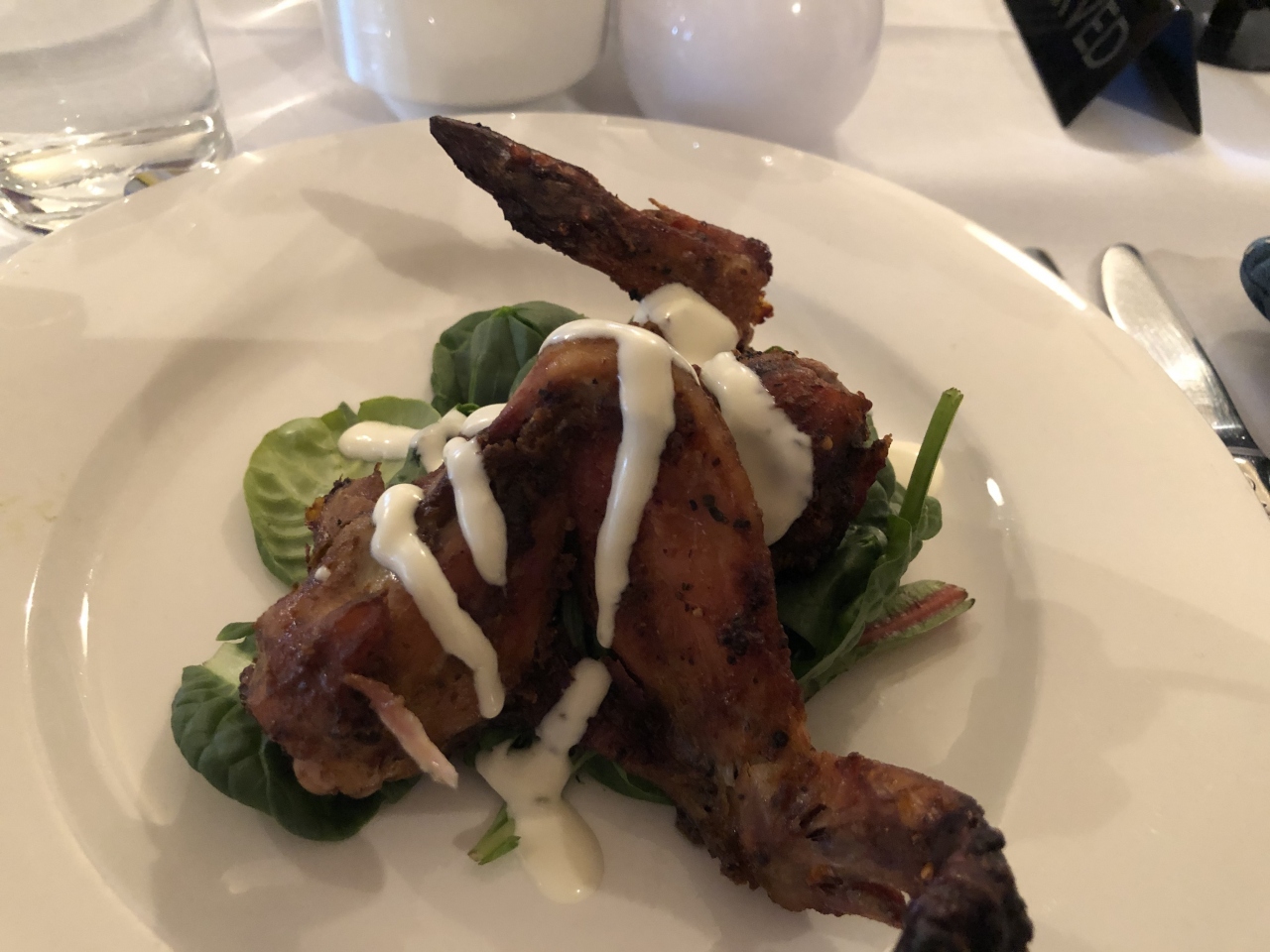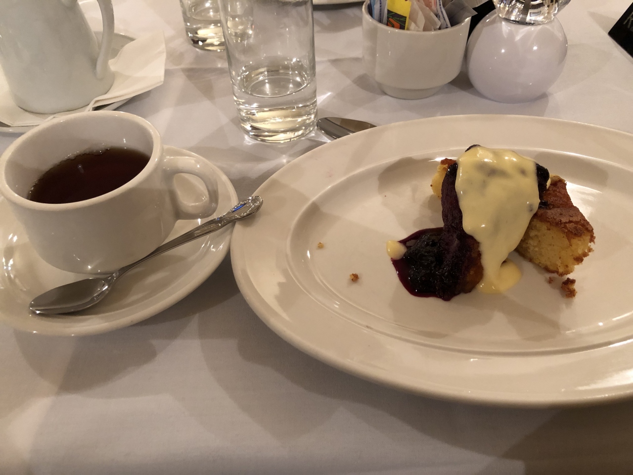 ツアーで別のホテルに宿泊したので、夕食と朝食だけ頂きました。夕食メニューは、2択。前菜は鶏手羽のグリル、メインが豚肩肉のロースト、デザートはオレンジとアーモンドのケーキ、紅茶を選びました。美味しかったですが、量が多すぎて残しました。