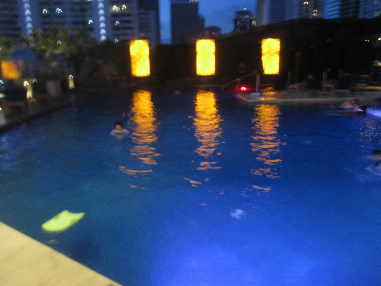 7月のバンコクは雨季まっただなかでした。快晴であっても、急に雲行きがあやしくなり雨が降ってきて、止むとすぐに快晴になるという天候でした。ウェスティンホテルの8階にあるプールエリアから雨上がりのきれいな夕焼けを望むことができ、あまりにきれいだったので記念撮影をしていました。