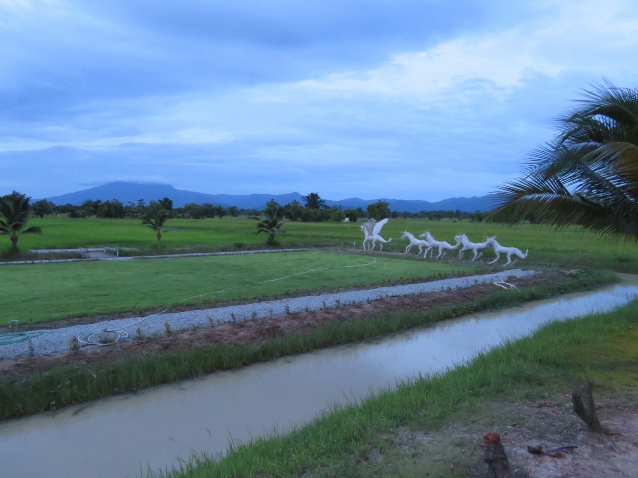 ホテルといっても二階建ての棟がいくつもあり、客室も広い、ショップ、広い中庭、プール、フィットネスにバーなど各種揃っています。そしてホテル敷地の回りは農地なので見通しもよく、早朝の敷地内の散歩は気持ちが良い。