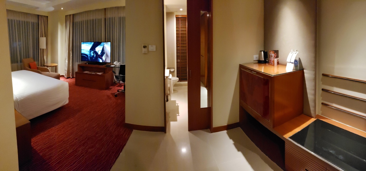 何度目かの宿泊。マリオット系列ホテルでは以前はアロフトに泊まることが多かったが、立地がどうもアレなので、鞍替えをしている。今回は1泊諭吉一枚弱ぐらい。会員特典でデラックスルームにアップグレードされた。2面採光の光あふれるお部屋。値段はあまり変わらんがやはりアロフトと違ってエグゼクティブラウンジがあるのはビジネス利用には助かる。