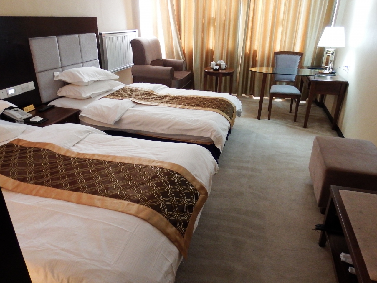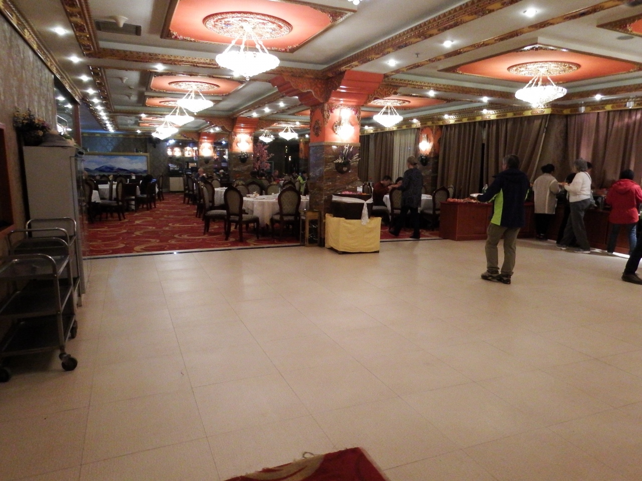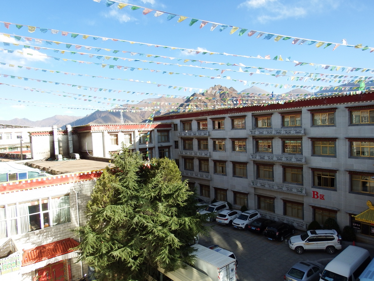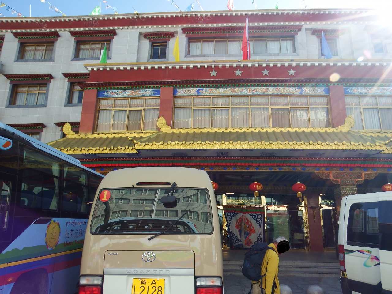 旧市街にあり大昭寺八角街に近く、プタラ宮へも遠くないので非常に便利。ホテル自体はちょっと古い感じだが、室内は清潔でアメニティ類もしっかりと揃っています。各国から団体客が多く利用しているようです。朝食ビュッフェ会場が広く円卓なのですが、席数が不足気味で色々な国の人が適当に開いている席に座っていくので、ちょっとカオス。