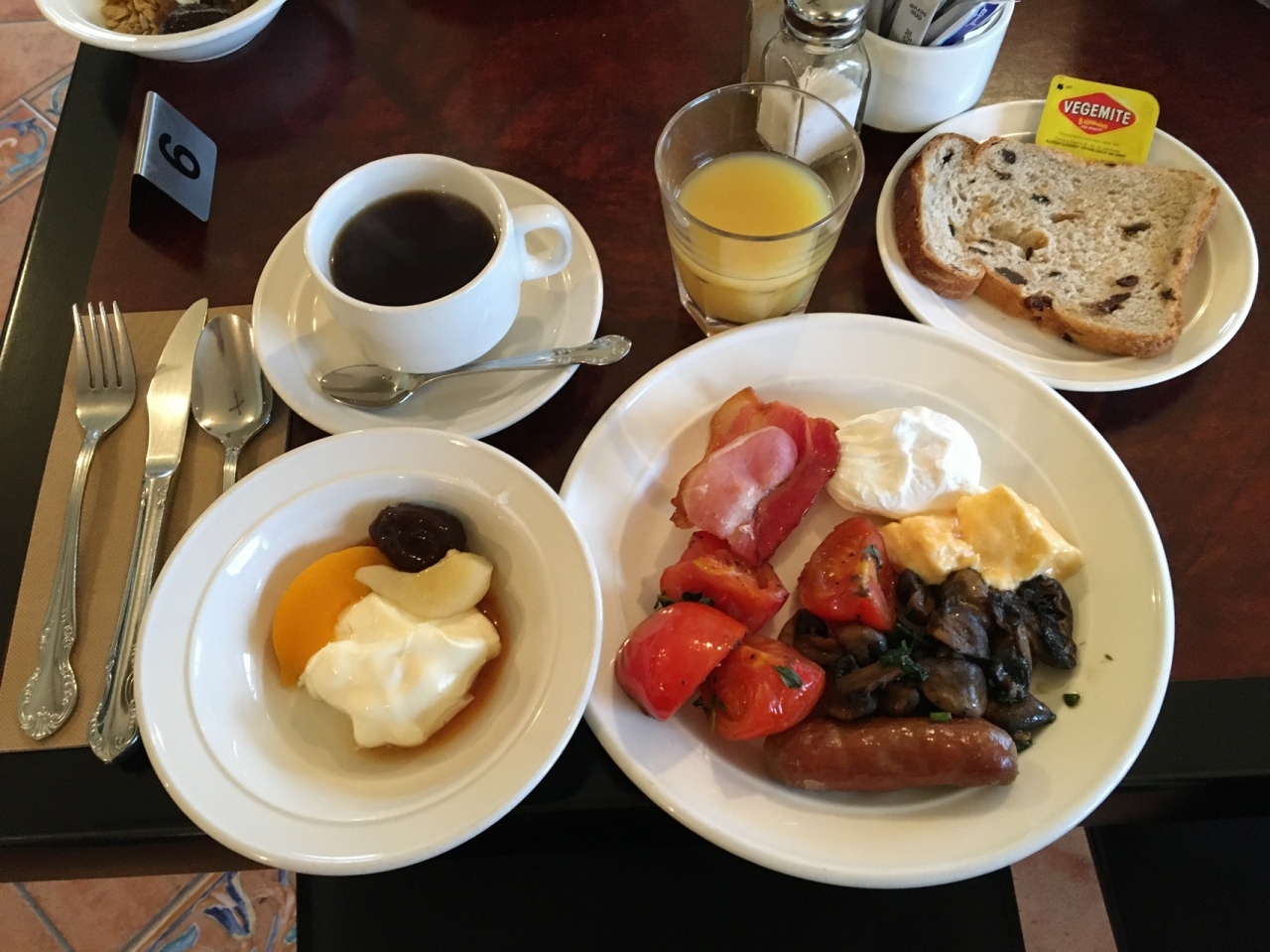 朝食は緑色のものが一つもなく品数もそんなで